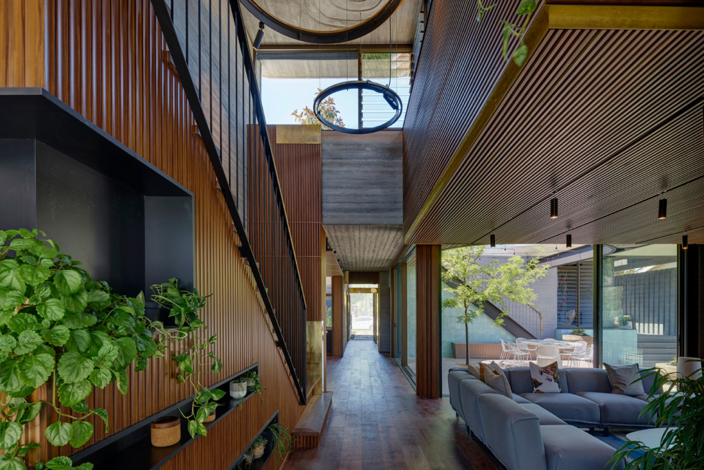 בהשראת הנוף העירוני של פרבר במערב אוסטרליה, האדריכל Neil Cownie הגה בית המשלב אלמנטים מודרניים וברוטליסטיים.