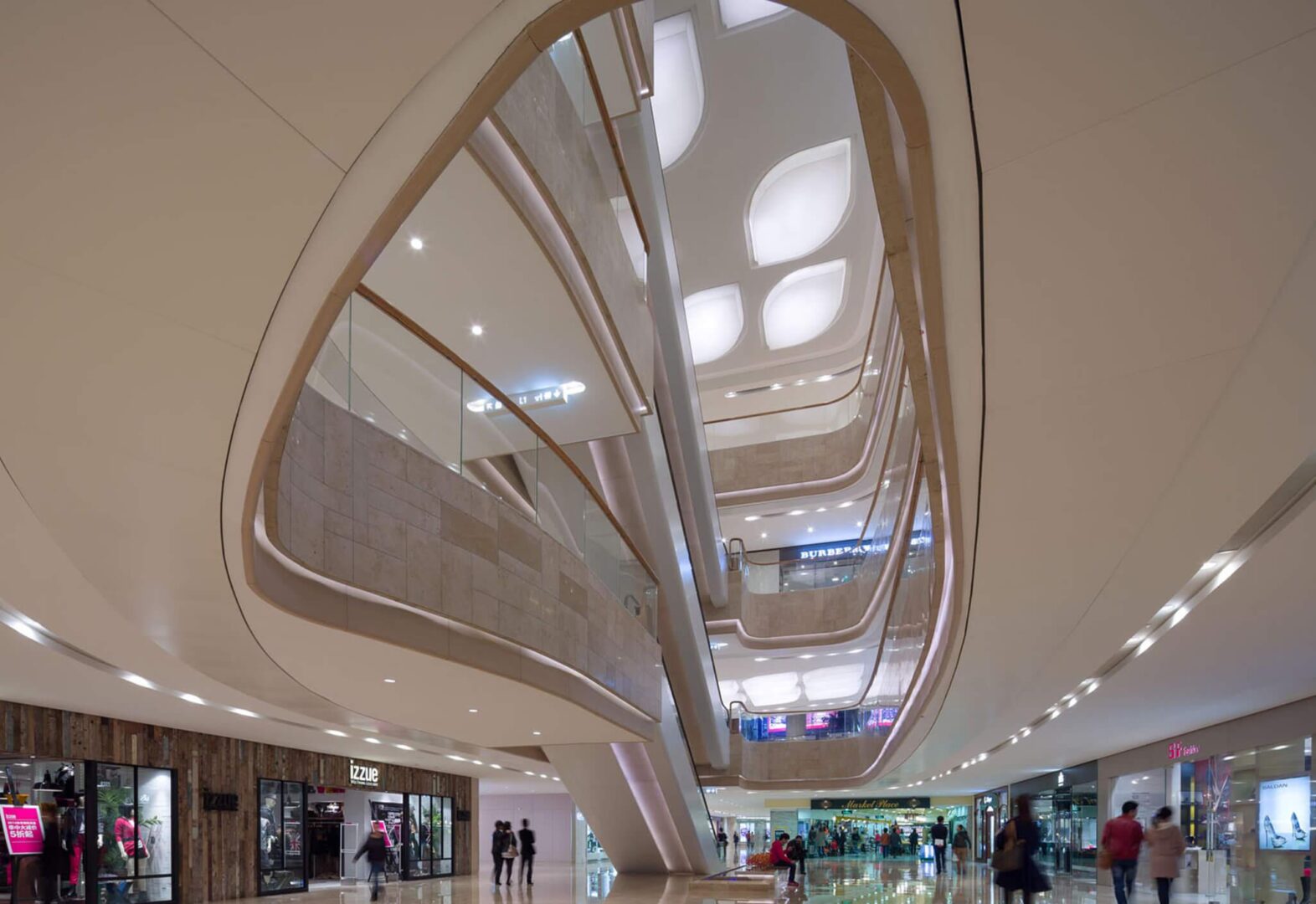 העיצוב הביא לקניון ביטוי אסתטי של גן אביבי – פרחים, צמחים, חרקים – על רקע הריצוף המבריק, צורות בשחור ולבן המזכירות כנפי פרפר, התקרה המוזהבת מקושטת בהדפסי דבורים ופרחים לבנים מתיזים מים ממזרקה במרכז האולם. דקלים מפוארים וצמחים טרופיים נושאים מנורות בהשראת פרחים, הקבועים בקירות כמו צמחים מטפסים.