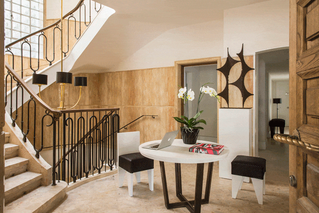 מעצב הפנים האיטלקי דוראטה תכנן ועיצב את הוילה כך שתיטיב לשמור על אווירת הפרטיות של הבית. דורטה התייחס בכובד ראש למאפיינים המקובלים של המעונות הפרטיים שנבנו באותה עת, וביקש להותיר את רוח התקופה נוכחת במקום. כך, שמר על ייחודו של המבנה, הנובע בין השאר, מהשלמות הנוצרת מתכנון מקיף של החלל ועד ירידה לפרטי הפרטים. פרטי הפנים מעוצבים- ובהם סורגים, קמין, דלתות למבואות, ספריית גומחה- וניכרת בהם תשומת לב לעיצוב הצורני והקפדה על בחירת החומרים. הללו משלימים את ההרמוניה של החלל.