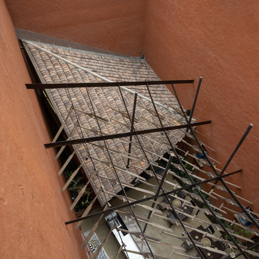 חלל המעבר נפתח לאורך סמטה קטנה, המובילה לחלל חצי פתוח. גולת הכותרת של כל החלל החיצוני הוא פסל תלוי עשוי 179 משוטים ממוחזרים.