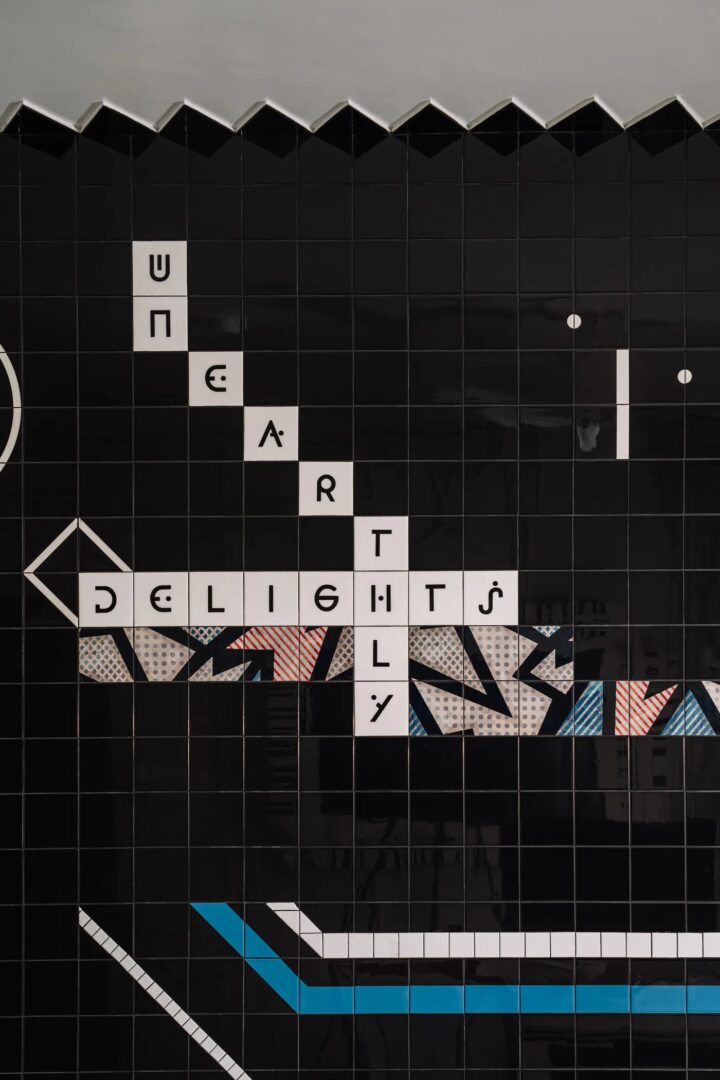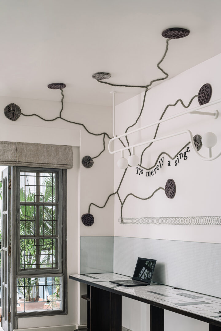 המשרד בתוך דירה בשטח 92 מ"ר, עם אופן ספייס של שולחנות למעצבים, אזור דיון מרכזי, טרקלין קהילתי, שתי זולות לפגישות. מקום שבו הנורמליות יצאה לחופשה. כל אלמנט, כל רהיט מותאמים אישית, תוך שימוש באינספור חומרים, כולל קטיפה בשחור-לבן, טרטן קפלים, עור, סיכות ביטחון, בד מודפס וכדורי אקריליק, שלטי ניאון, שרשראות אופניים, פרווה מלאכותית ורשת (אם להזכיר כמה). הקיר שופע דמויות: חתול נרגן, רוח רפאים לצד צורות אורגניות וסצנות תיאטרליות.