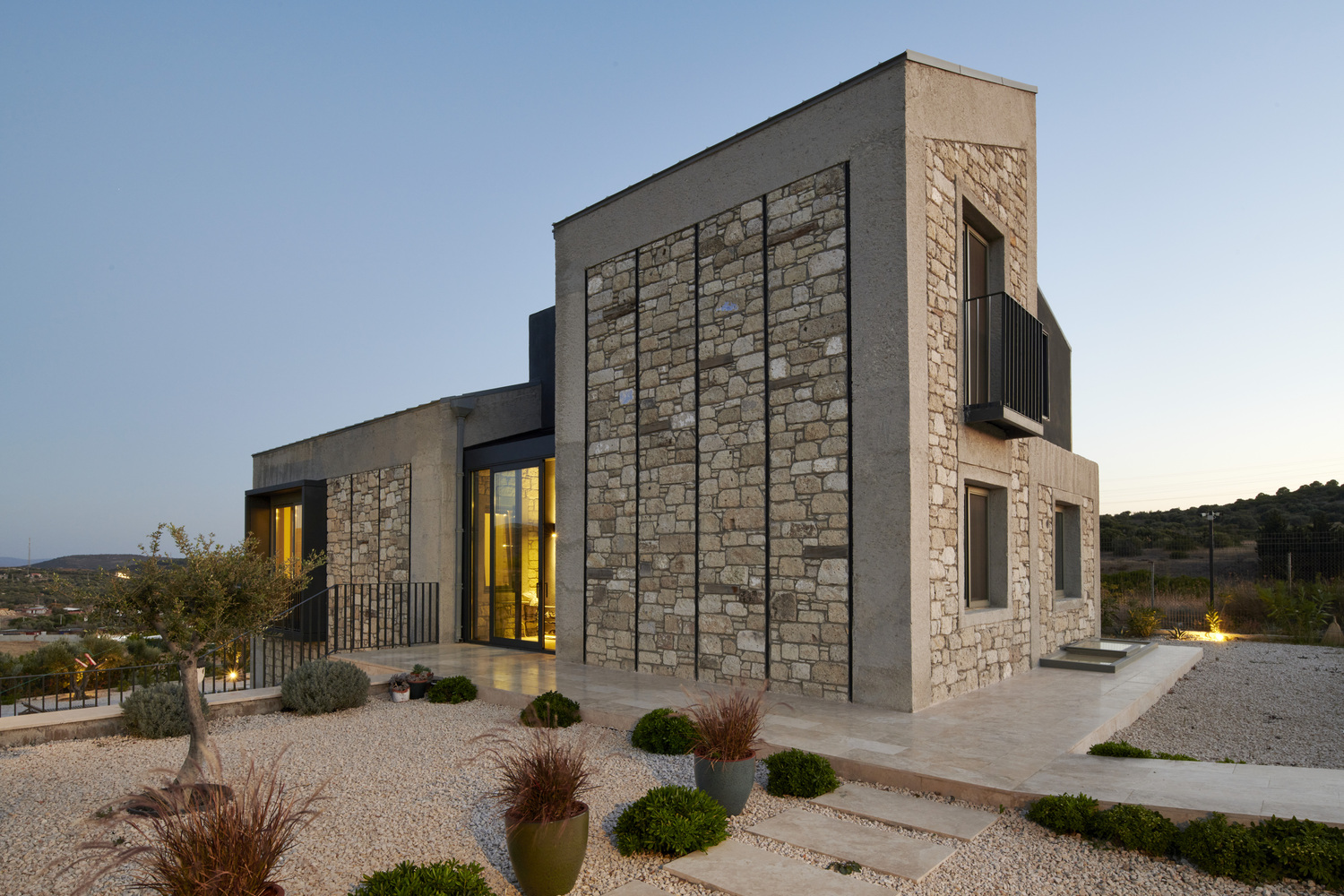 טכניקת התקנת האבן במעטפת הבית, היא בהשראת הארכיטקטורה היוונית המקומית ההיסטורית ברחבי האזור.