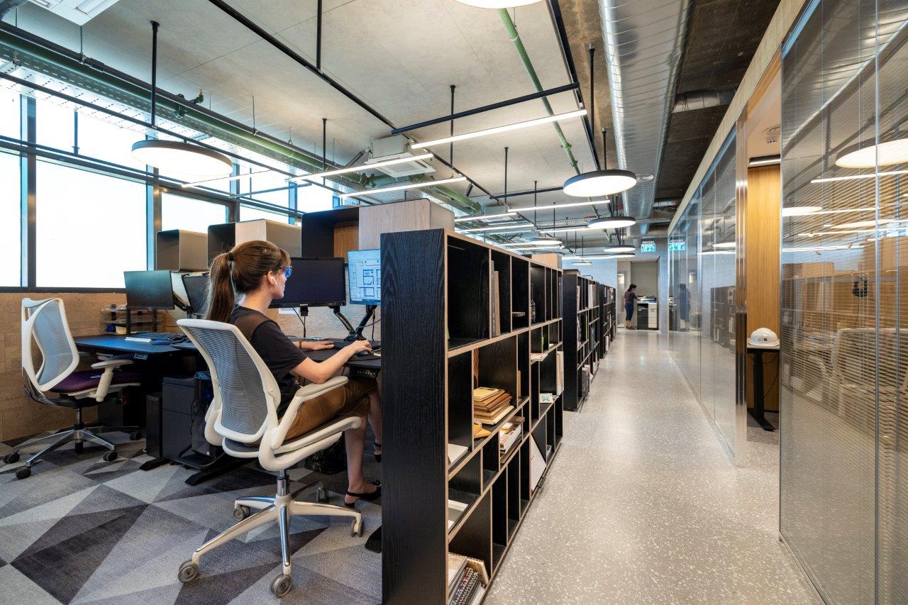 במשרד הממוקם בלוד, הרחק מהמרכז, עובדים 65 אדריכלים, מהנדסים ומתכנני ערים, במערך תיכנוני מושכל לטובת עבודה נעימה, ורסטילית ומקצועית.