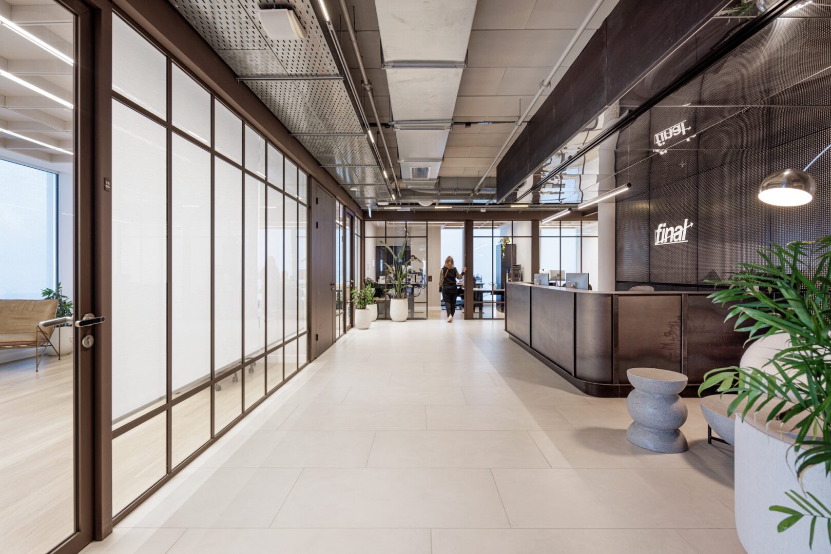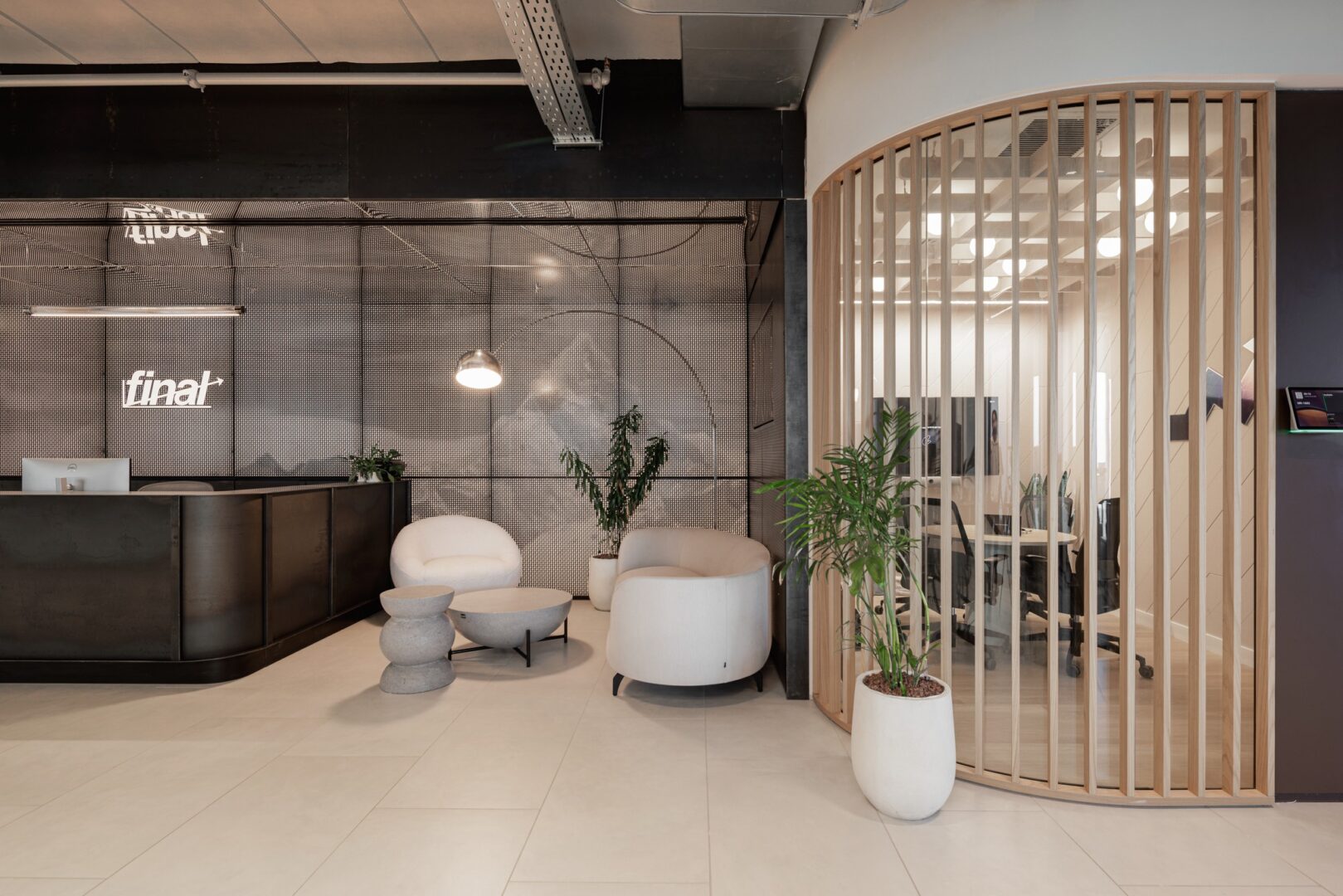 משרדי חברת Final! החדשים, שעוצבו על ידי המעצבת ורד גינדי, מציגים שפה עיצובית אלגנטית ועל-זמנית המחברת בין תרבות היי-טק מתקדמת לבין האסתטיקה המקומית של תל אביב הישנה. הפרויקט מתאפיין בדיאלוג בין חומרים חדשניים—כגון חזיתות זכוכית מהרצפה עד התקרה, אלמנטים הולוגרפיים וריתמיקה אלגוריתמית - לבין חומרים מסורתיים כמו לבנים לבנות ונגרות קלאסית.