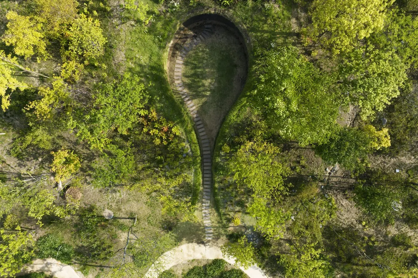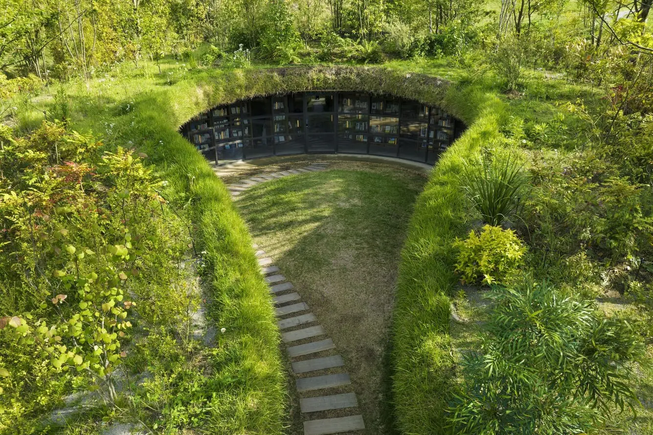 הישר מתוך סרט פנטזיה, Library in the Earth היא ללא ספק אחת הספריות היפות והשלוות ביותר בעולם. האתר התת-קרקעי היה בעבר רק פיסת אדמה יבשה שישבה על גבי עמק מלא בפסולת בנייה. עם זאת, הוא שוחזר לעמק שופע על ידי משרד האדריכלות Hiroshi Nakamura & NAP. הספרייה נועדה להידמות לטיפת מים במבט מלמעלה, והתקרה המשופעת בעדינות בפנים מחקה את קווי המתאר הטבעיים של הקרקע. אור עליון בצורת חריר מטיל הקרנות אתריות של עננים סחפים על שולחן שמתחת, והופך את החדר למעין קמרה אובסקורה. במרחק שעת נסיעה בלבד מטוקיו, הספרייה ממוקמת בתוך שדות קורקו, אתר חקלאי עם אוכל מהחווה לשולחן, מיצבי אמנות, לינה וחוויות חקלאיות. Koji Fujii / TOREAL