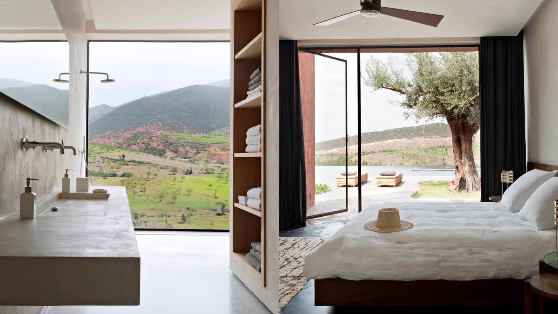 בית נופש מינימליסטי למרגלות הרי האטלס במרוקו. אבן האוריקו מעניק לבית הקסבה (בית מרוקאי מסורתי) צבע אדום ייחודי, המזוהה עם מרקש הסמוכה.