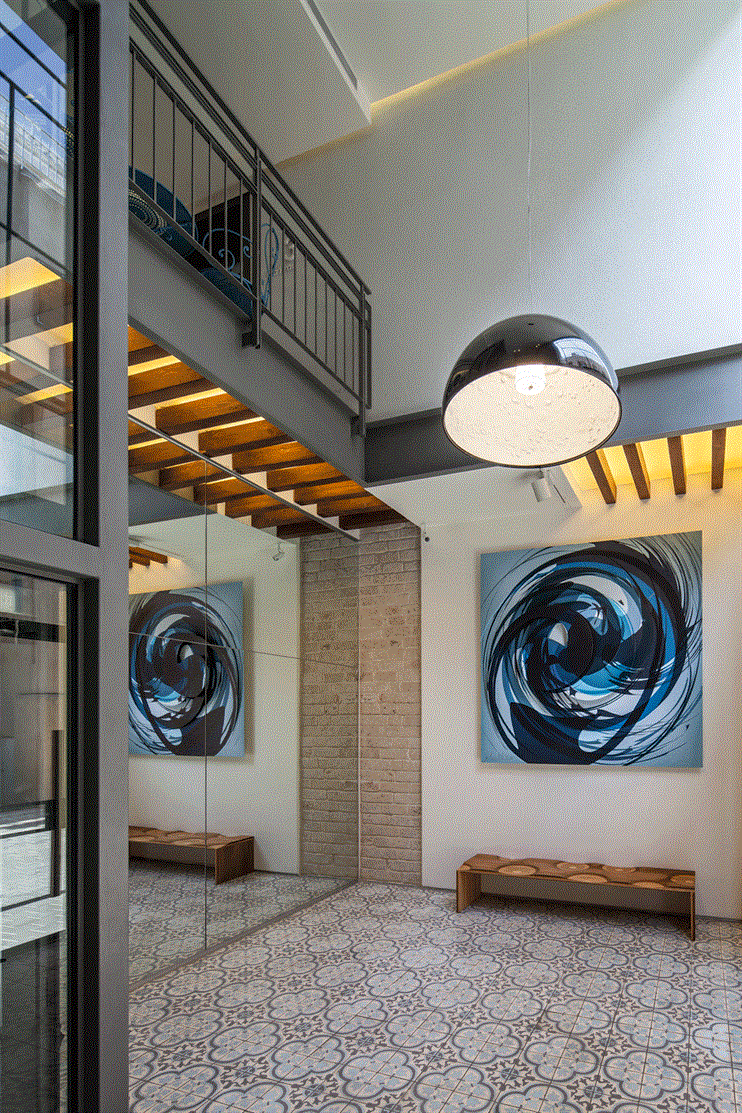 עיצוב הדירה הינו המשך ישיר לעיצוב הבניין תוך מתן הדגשים אישיים המתבטאים בבחירת פריטי ריהוט אקלקטיים ואומנות לצד שימוש בפלטת צבעים ניטרלית המשולבת בצבעוניות עזה.
