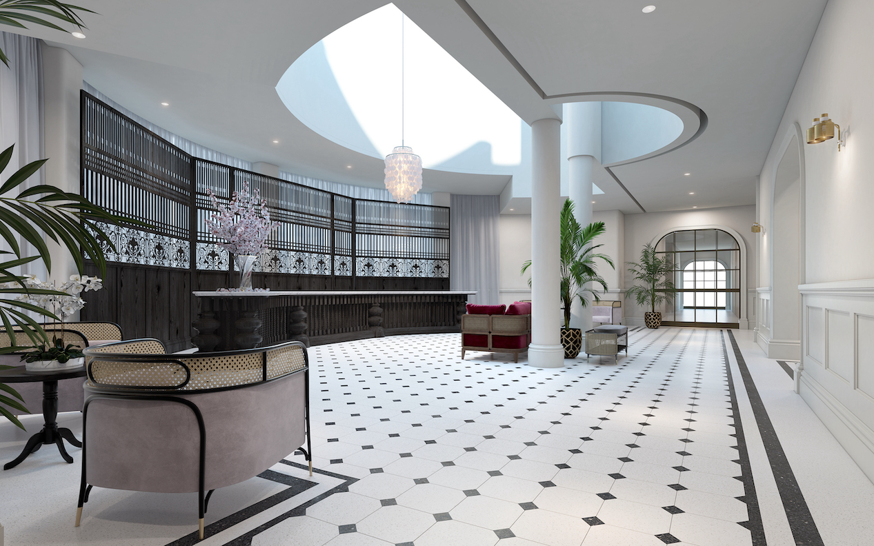 הקונצפט העיצובי למלון Colonial Resort, מלון פנאי, ספא ועסקים, על רצועת החוף של חדרה, הוא לשדר "מקום וזמן אחר" לאורחים, מהכניסה למלון חלל הלובי ודרך אזור הקבלה.