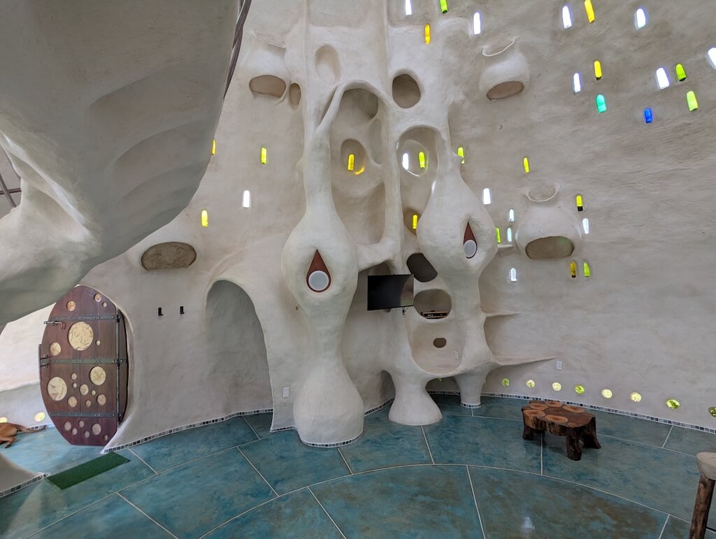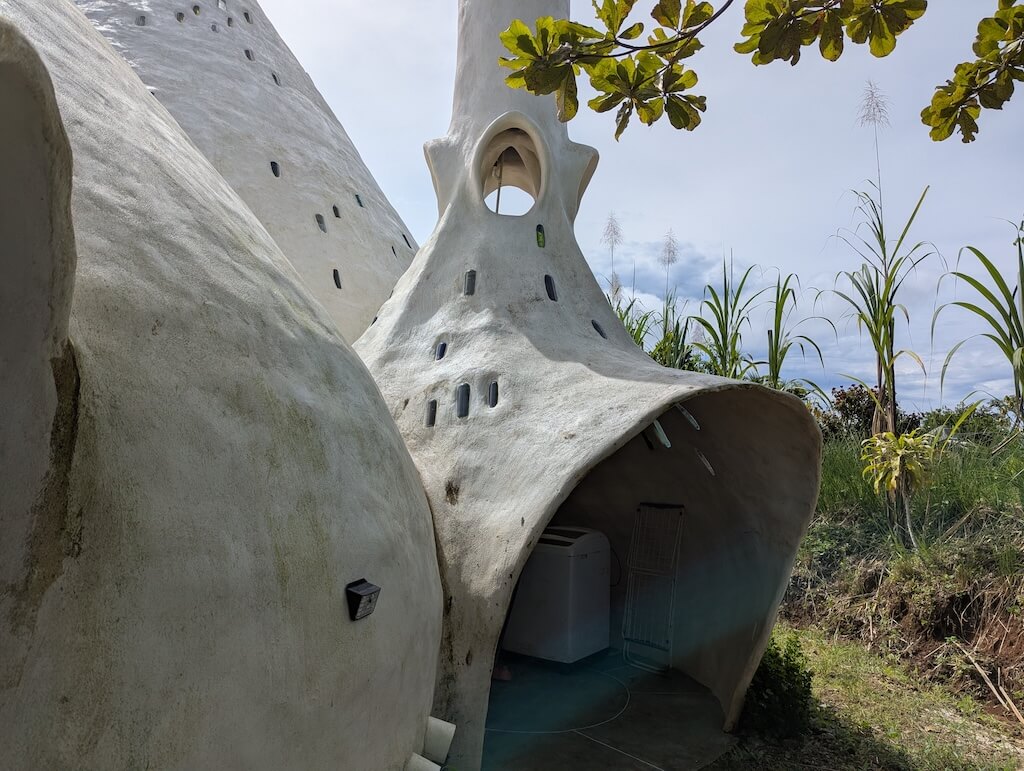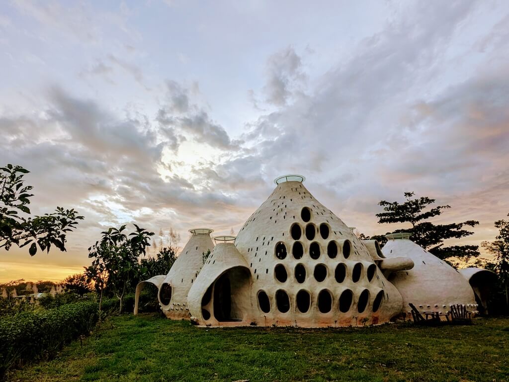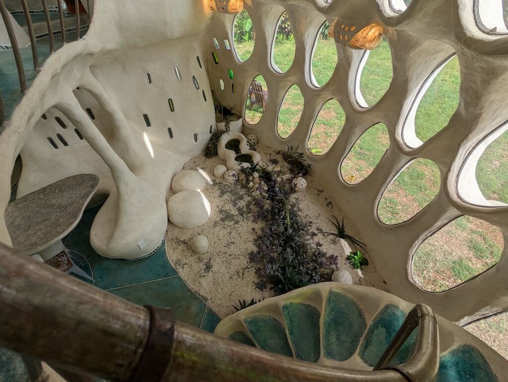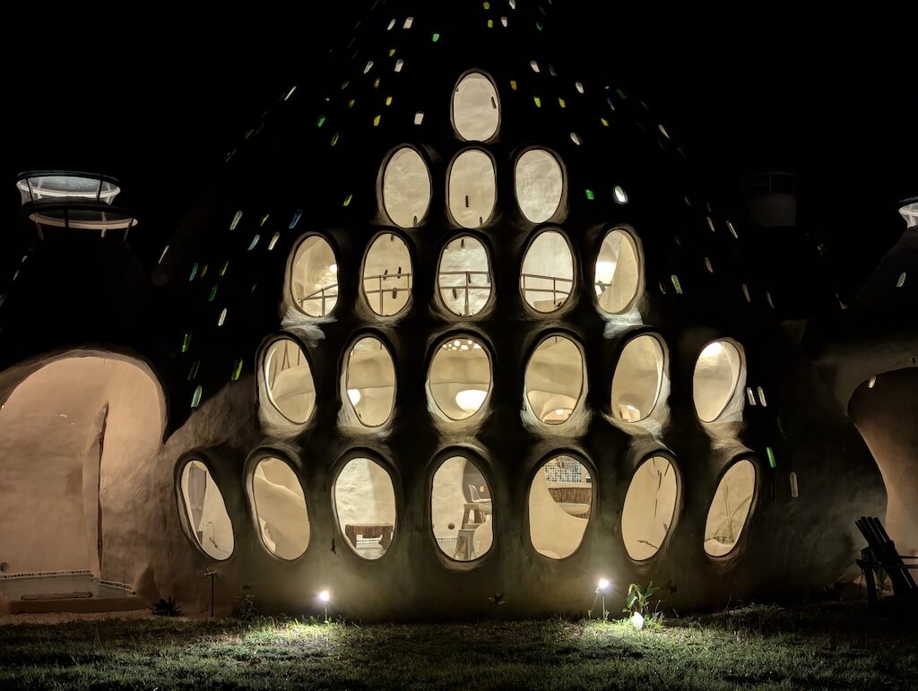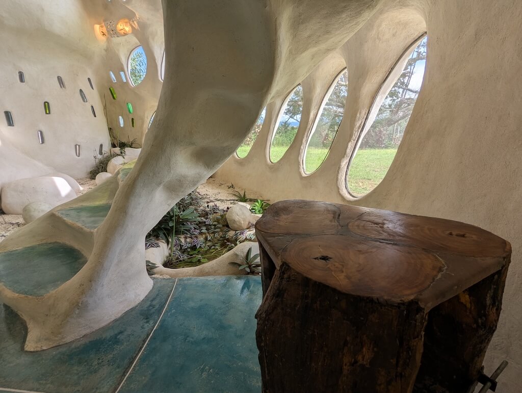 הפרויקט האחרון שלו, בית מגורים אורגני המצולם בגלריה, מדגים תפיסה זו הלכה למעשה. המבנה מדמה אשכול טבעי דמוי בצל: כיפה מרכזית הצומחת כלפי מעלה, מוקפת “ניצנים” קטנים יותר – כיפות משניות המתחרות על אור, אוויר ומרחב, בדומה לאופן שבו מבנים טבעיים מתפתחים. עם התקדמות ה”צמיחה”, האלמנטים התומכים מתפוגגים ויוצרים פתחים עגולים, חללים בועתיים ומעברים זורמים בין פנים לחוץ.