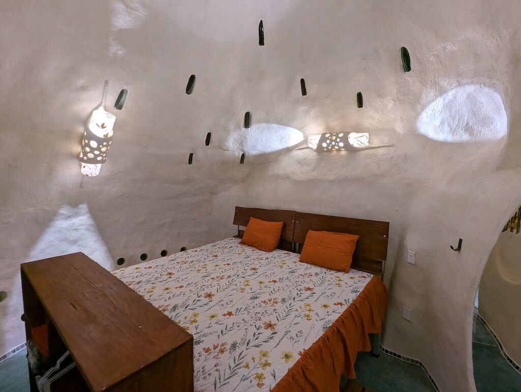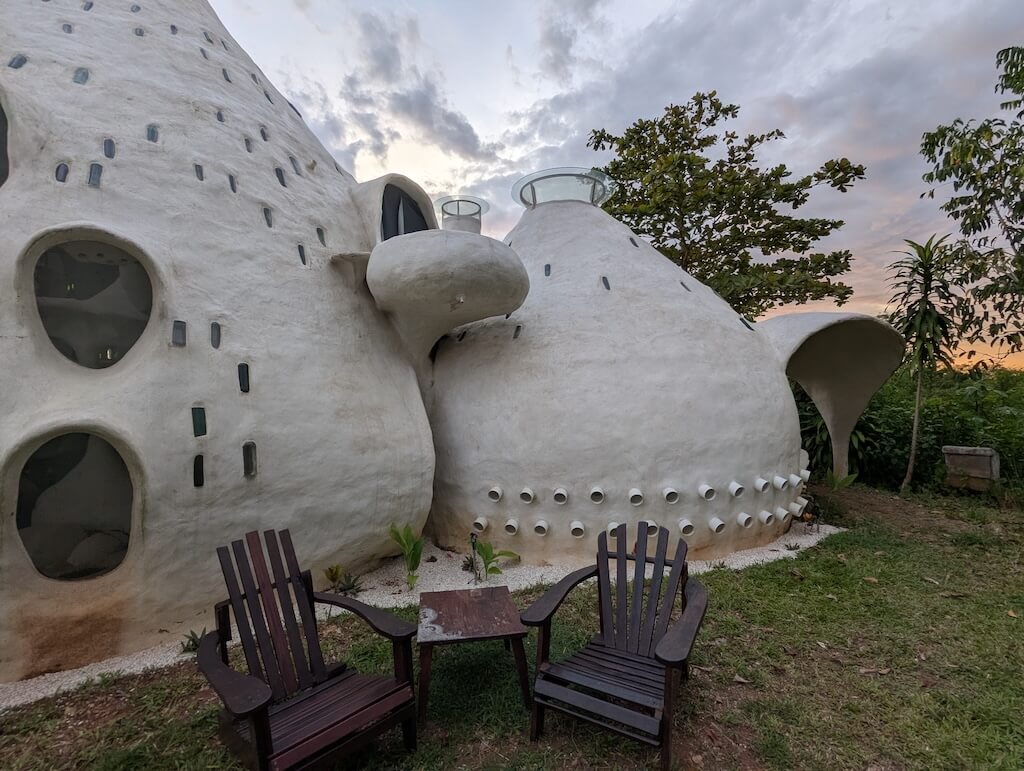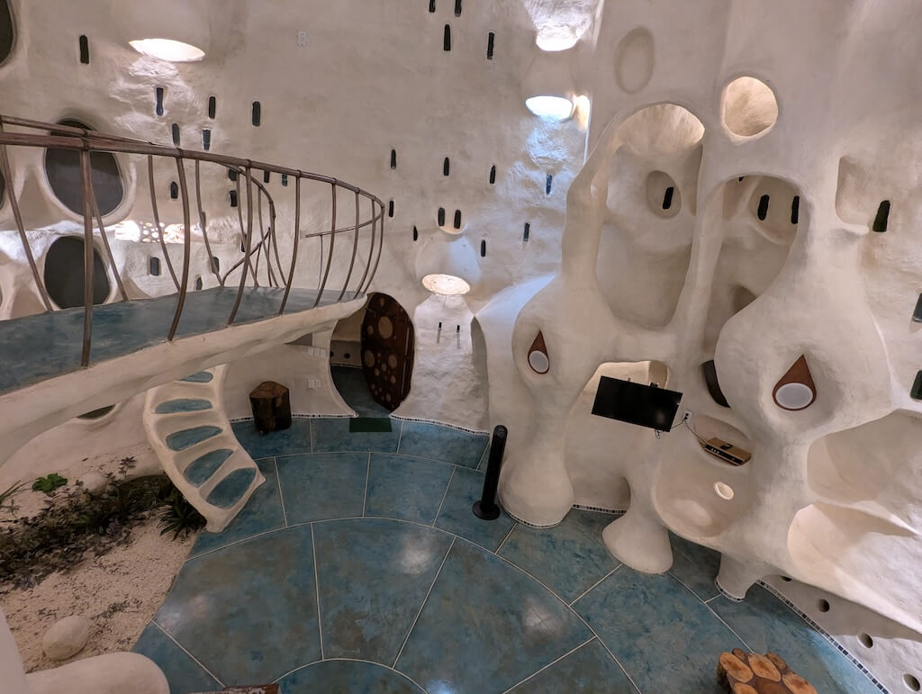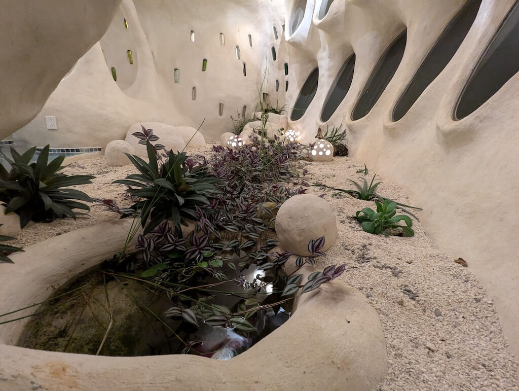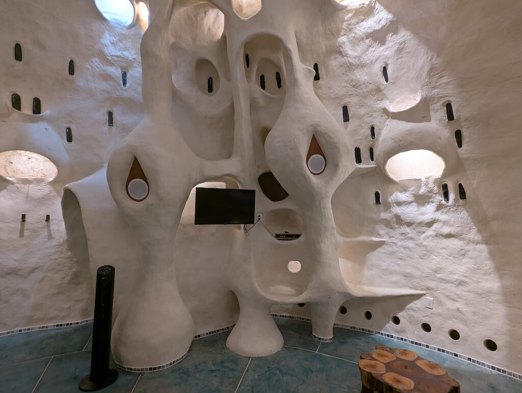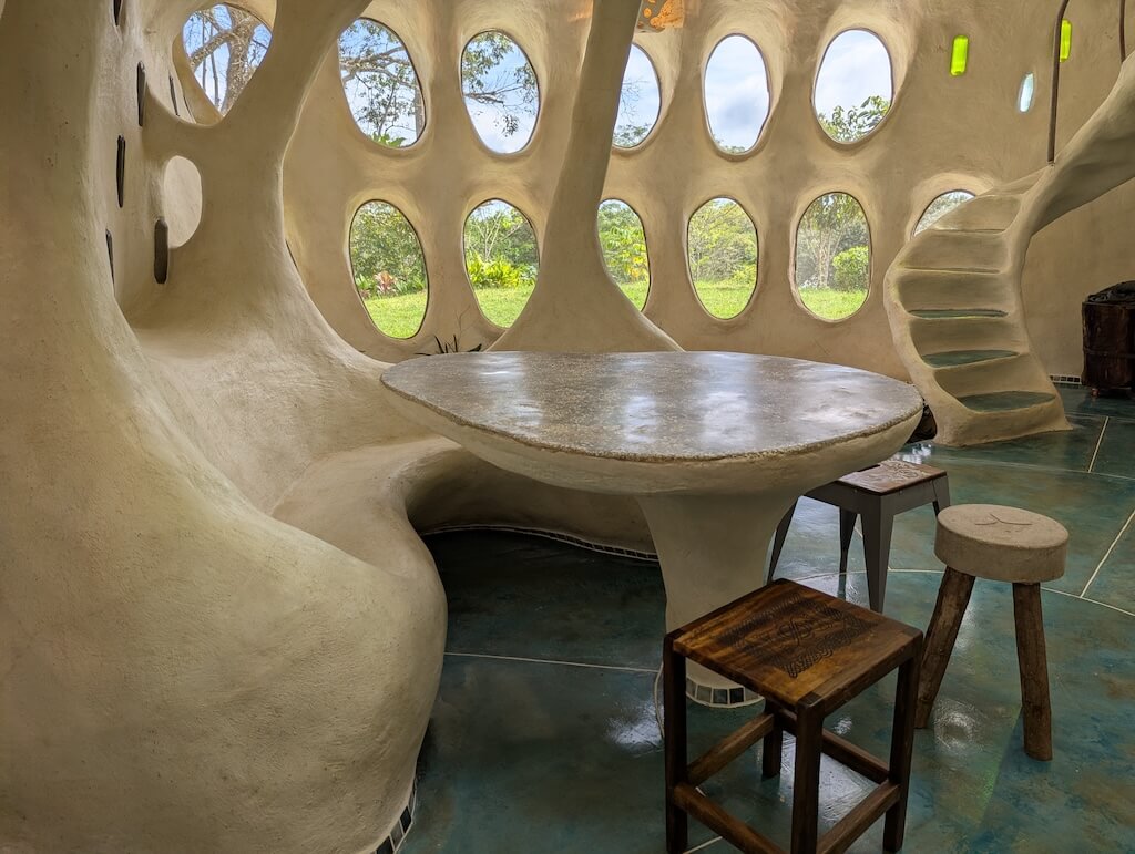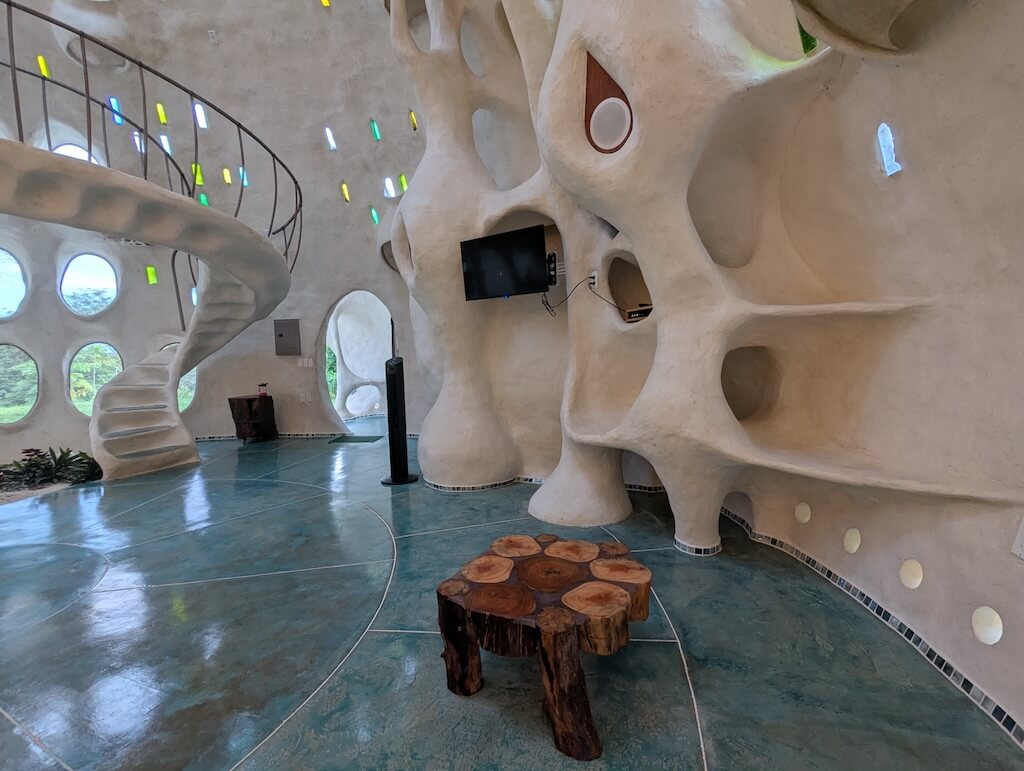 הפרויקט האחרון שלו, בית מגורים אורגני המצולם בגלריה, מדגים תפיסה זו הלכה למעשה. המבנה מדמה אשכול טבעי דמוי בצל: כיפה מרכזית הצומחת כלפי מעלה, מוקפת “ניצנים” קטנים יותר – כיפות משניות המתחרות על אור, אוויר ומרחב, בדומה לאופן שבו מבנים טבעיים מתפתחים. עם התקדמות ה”צמיחה”, האלמנטים התומכים מתפוגגים ויוצרים פתחים עגולים, חללים בועתיים ומעברים זורמים בין פנים לחוץ.