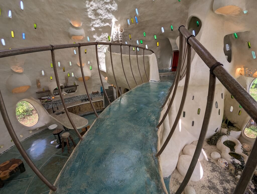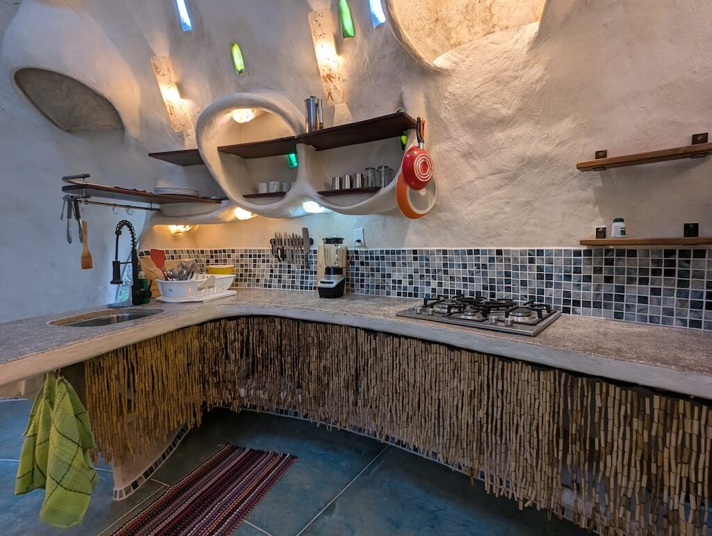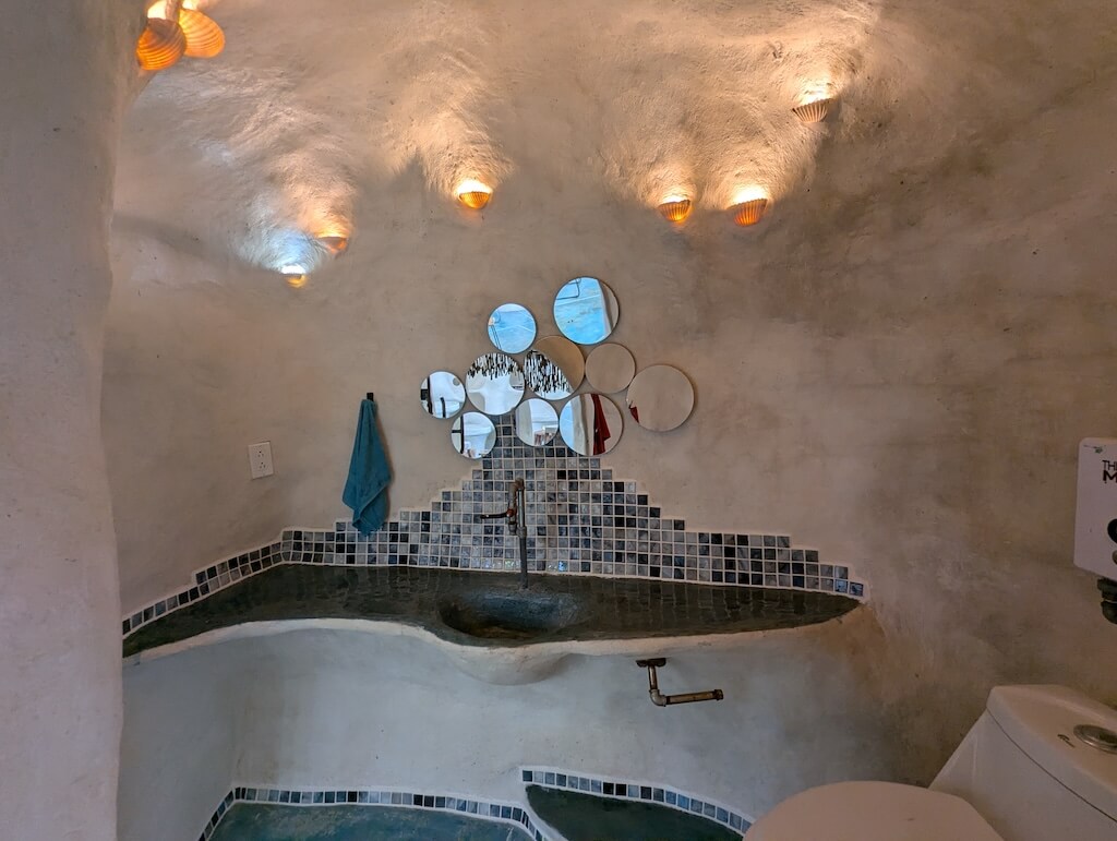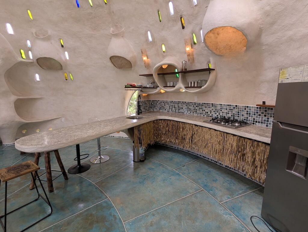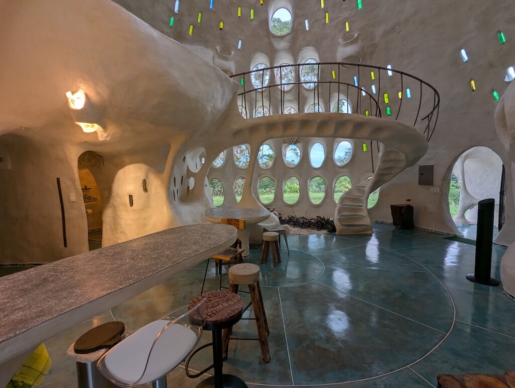 הבית משלב פתרונות פונקציונליים כחלק בלתי נפרד מהאדריכלות: גן זן עם מערכת מים אקולוגית, חלונות המכניסים רוח וגשם תוך הגנה מיתושים, תאורה טבעית דרך פתחים עיליים, מערכות מים בכוח הכבידה, ריהוט מובנה ותאורה שקועה. שיתוף פעולה עם מהנדס סאונד אף הוביל לשילוב רמקולים בתוך הכיפות, המשתמשות בצורתן כתיבות תהודה טבעיות.