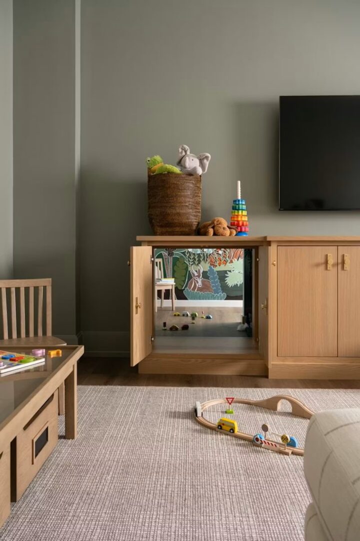 המעצבת Becky Asleson יצרה חלל משחקים נסתר מתחת למדרגות, עם מעבר סודי דרך רהיט מותאם אישית. התוצאה: “עולם קטן” לילדים, שמוסיף אלמנט של דמיון והרפתקה לבית.