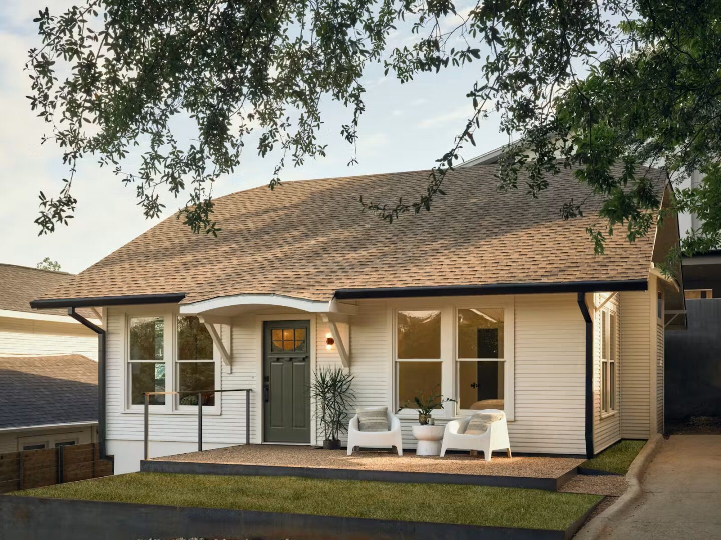 באוסטין, האדריכל Trey Farmer שילב בין שימור למגורים בני קיימא: מאחורי בית ישן נבנה מבנה חדש בסטנדרט Passive House, הכולל מחזור מי גשמים, מערכות חשמל חכמות ותשתית לאנרגיה מאופסת.
