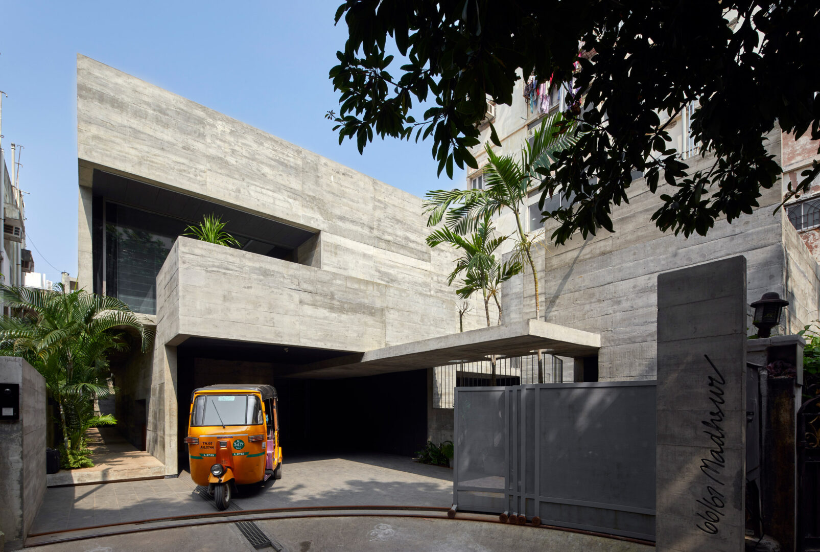 האתר לבניית ביתו של איש עסקים, אשתו ושלוש בנותיו, שתכננו Matharoo Associates, ממוקם בתוך המרקם הפרברי הצפוף של צ'נאי בהודו. האתר הצר והצפוף סגור מכל ארבעת הצדדים, למעט פינה פתוחה בדרום-מערב המחברת אותו לכביש הגישה. היותו מוגבל על ידי בתים משלושה צדדים, ומתחם דירות גבוה בצדו הארוך, משאיר מעט מקום לאור ואוורור, ושולל ממנו חלק ניכר מפרטיותו. עקרונות קבועים אלה של עיצוב מבנים הודי מסורתי נובעים לעתים קרובות ממיתוסים ומאתגרים את ההיגיון של תכנון חלל רציונלי והקשרי.