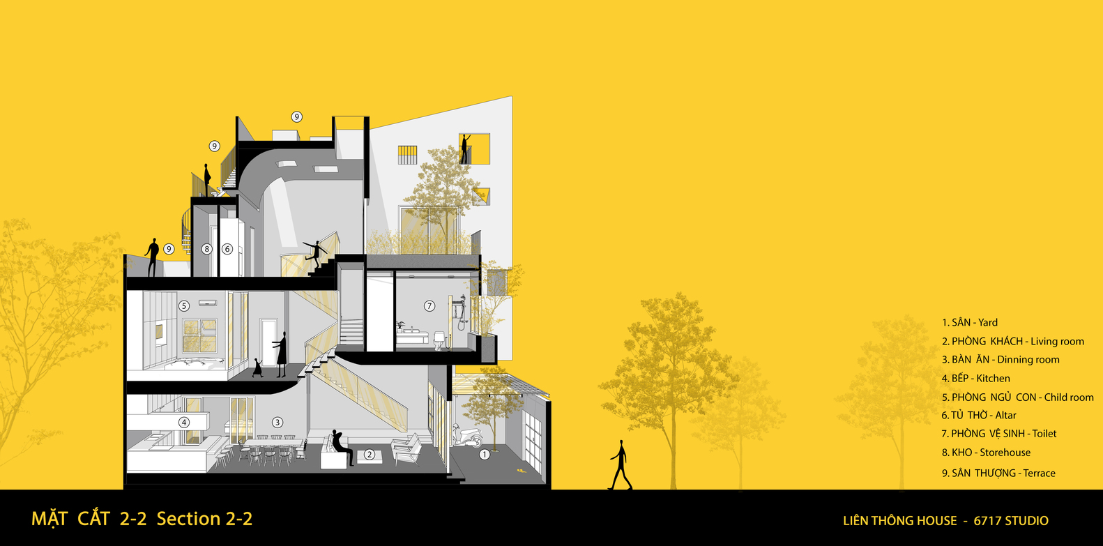 את בית Lien Thong House תיכננו 6717 Studio למשפחה צעירה והוא מגדיר מחדש את הגבול בין פנים לחוץ.