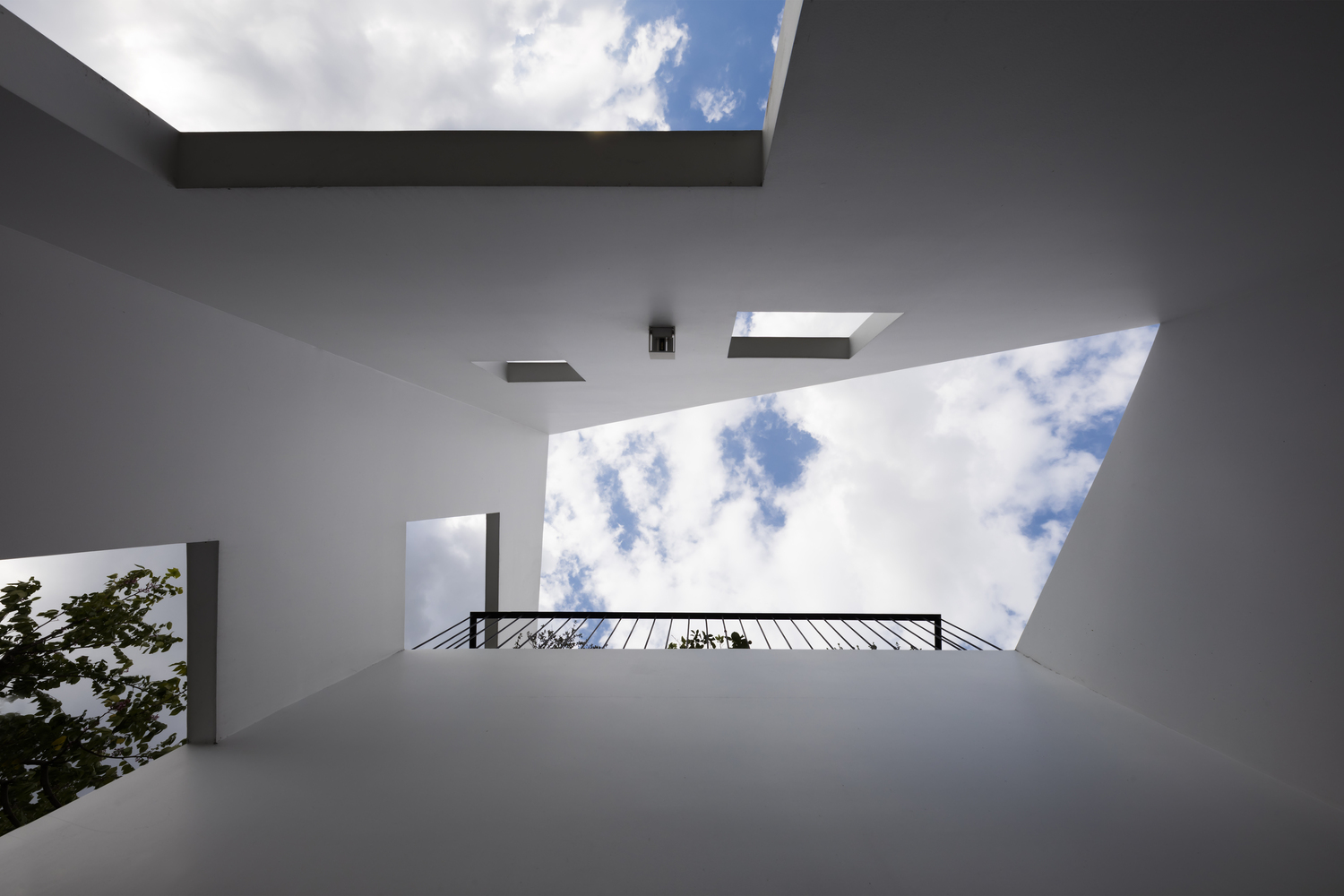 נפח לבן ונקי נחתך בפתחים מרובעים גדולים שממסגרים את העיר, בעוד שלד בטון מאפשר חללים פתוחים, גמישים וזורמים. ספסל ארוך, מדרגות שמתפקדות כמקום ישיבה, וחלל מרכזי אחד שמחבר בין כולם – יוצרים בית שהוא מרחב משותף, חי ונושם. זה בדיוק הסיפור: בית בלי גבולות, שבו החיים זורמים יחד.