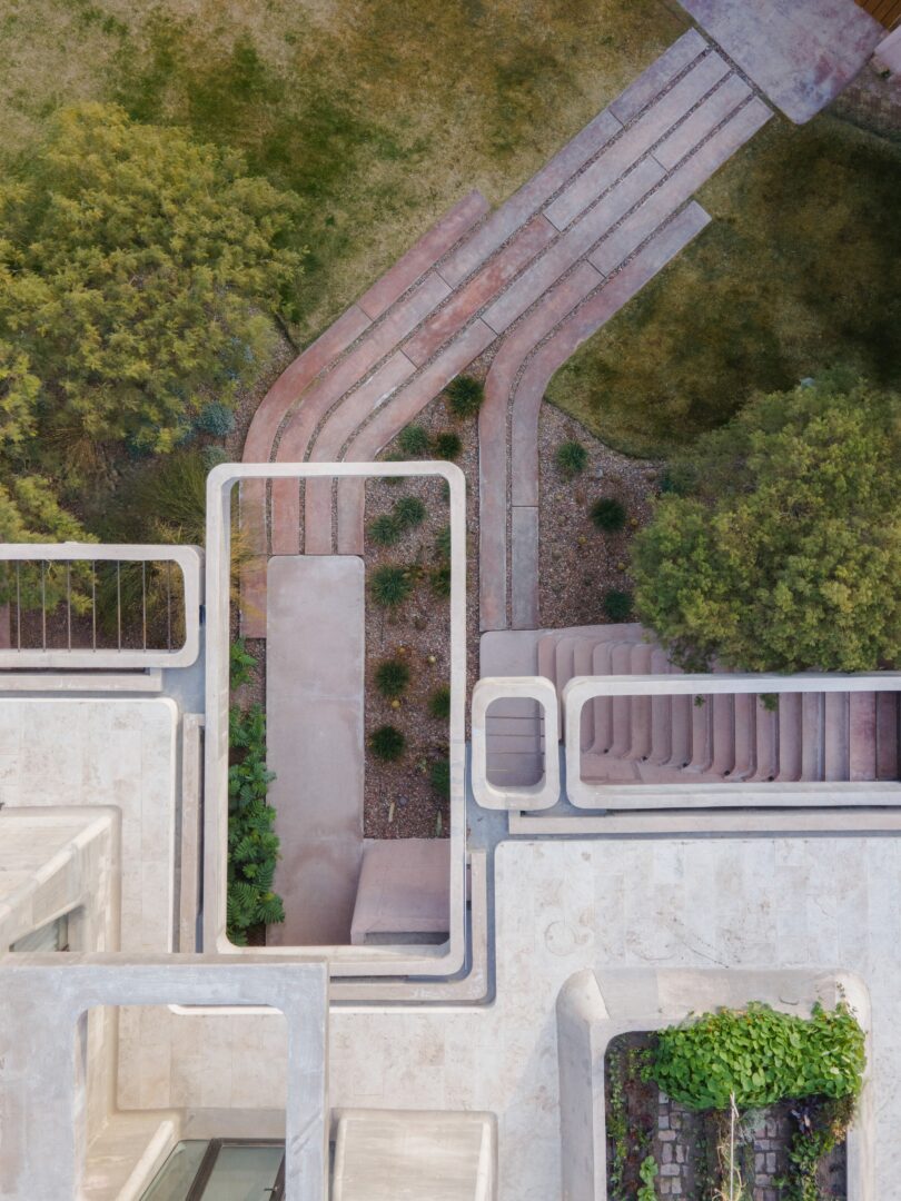 תוך ניצול מגבלות הגובה שמטיל התכנון העירוני, הפרויקט הוא מסע דרך המגרש; מהבית יורדים
