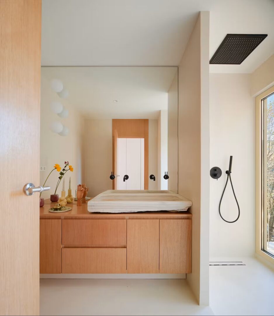 עיצוב הבית עוקב אחר יחס הזהב הן בתכנון והן בגובה, ומשיג איזון ויזואלי בין פשטות לתחכום. הנפח נראה ישיר, כאשר שלוש מחזיתותיו – הפונות לכניסה ולנכסים הסמוכים – כוללות פתחים מאופקים הממוקמים בקפידה, חלקם מכוסים במסכי סריג לשליטה באור השמש.