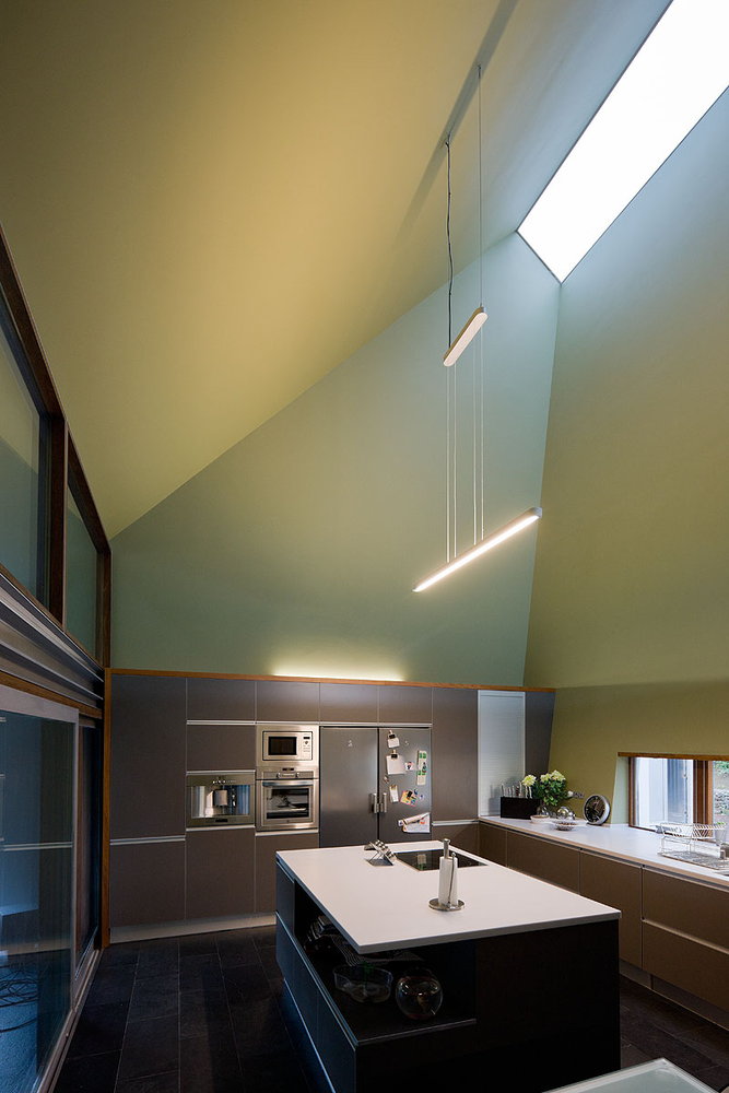 תכנון הבית נשען על הבנה עמוקה של המיקרו־אקלים המקומי: קומת הקרקע בנויה כחלל פתוח וגמיש, הכולל חצרות פנימיות ופטיו מקורים המאפשרים שימוש לאורך כל עונות השנה. קירות זכוכית רחבים פותחים את הבית לנוף הירוק ומכניסים אור טבעי, בעוד סלון כפול גובה מדגיש את תחושת המרחב והזרימה.