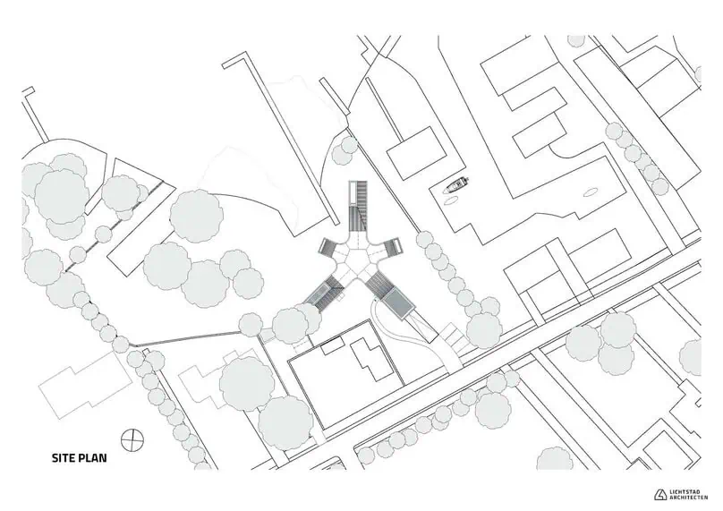 אומר האדריכל "הגישה היא מהקומה העליונה, שם הבית מציג את עצמו כנפח רגיל.