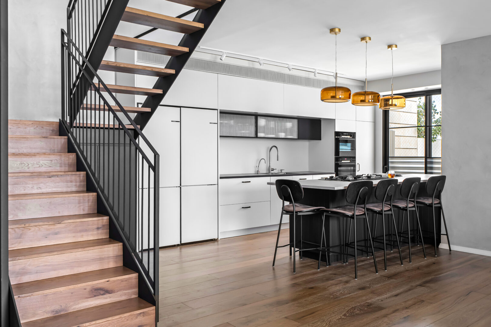 “שינינו לגמרי את כיוון גרם המדרגות,” מספרת רוט. “במקום מבנה כבד, יצרנו מדרגות קלות שמכניסות אור וזרימה. זה נתן לבית תחושה של בית פרטי – לא של דירה עם שכנים”.