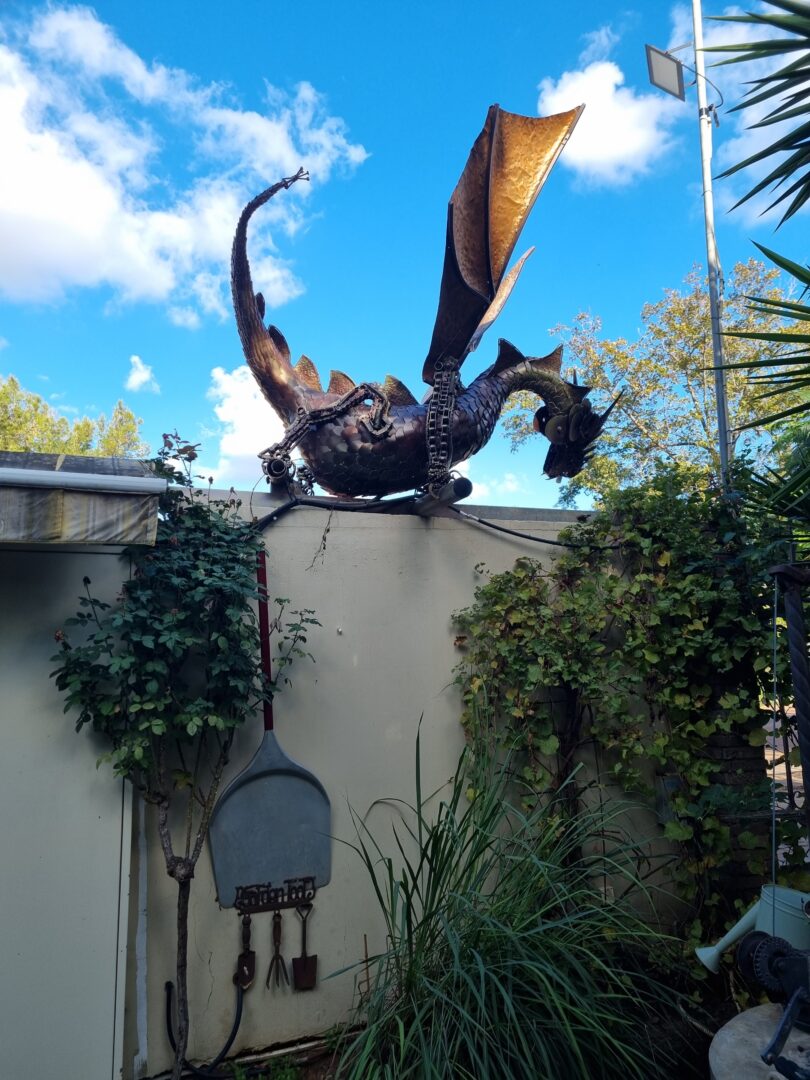 בסמטה שקטה ומוצנעת, בפאתי מושב בשרון, ניצב בית שמראהו החיצוני אינו מסגיר את העולם יוצא הדופן המתקיים בתוכו. רק דרקון מתכתי, המרחף מעל שער הכניסה, רומז למתרחש מעבר לו - עולם פנטסטי שבו אדריכלות, פיסול וחיי יום־יום מתמזגים ליצירה אחת שלמה.
