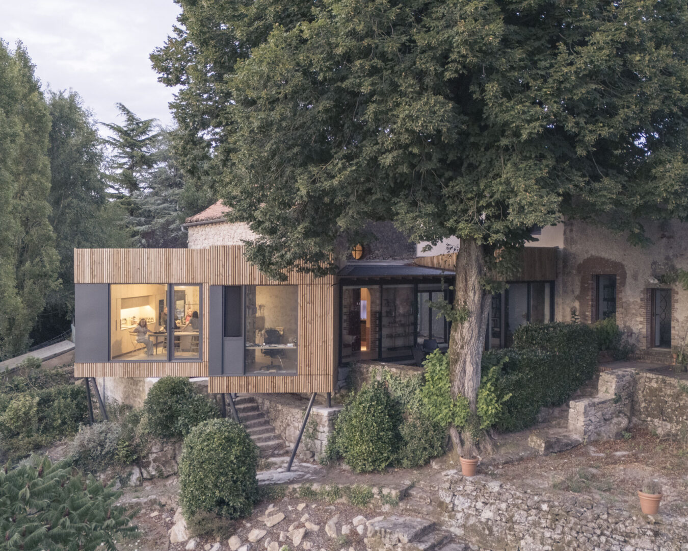 תוספת מגורים והרחבה לקפלת אבן במרכז כפר היסטורי, בבורדו, צרפת, נבנתה בקוים מודרניים אך פשוטים, נצמדת למבנה הישן ומשמרת את ההיסטוריה והמורשת של האתר.