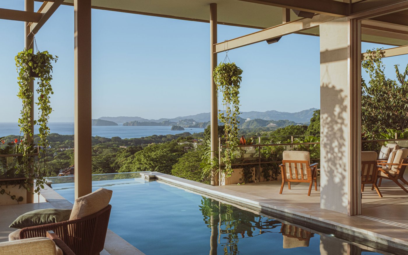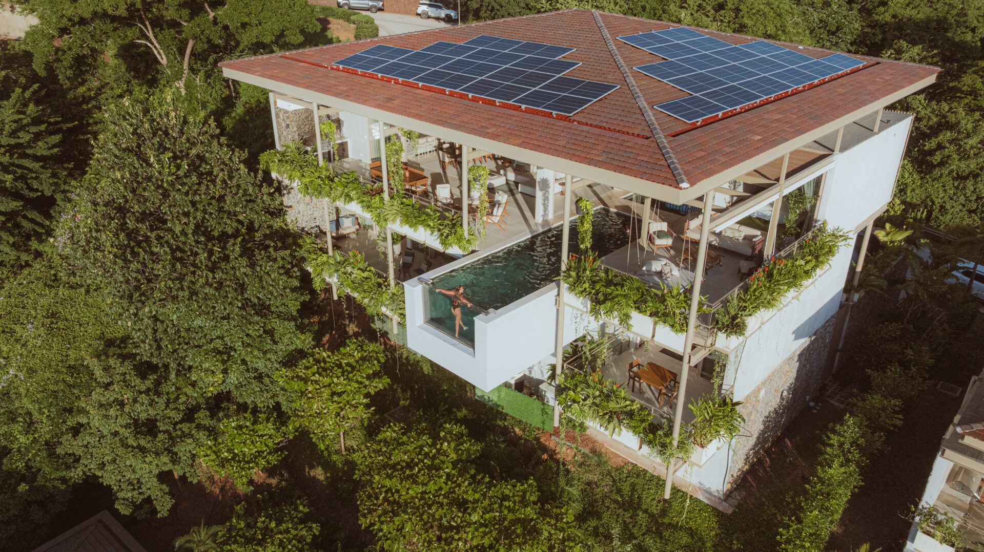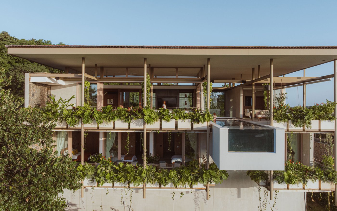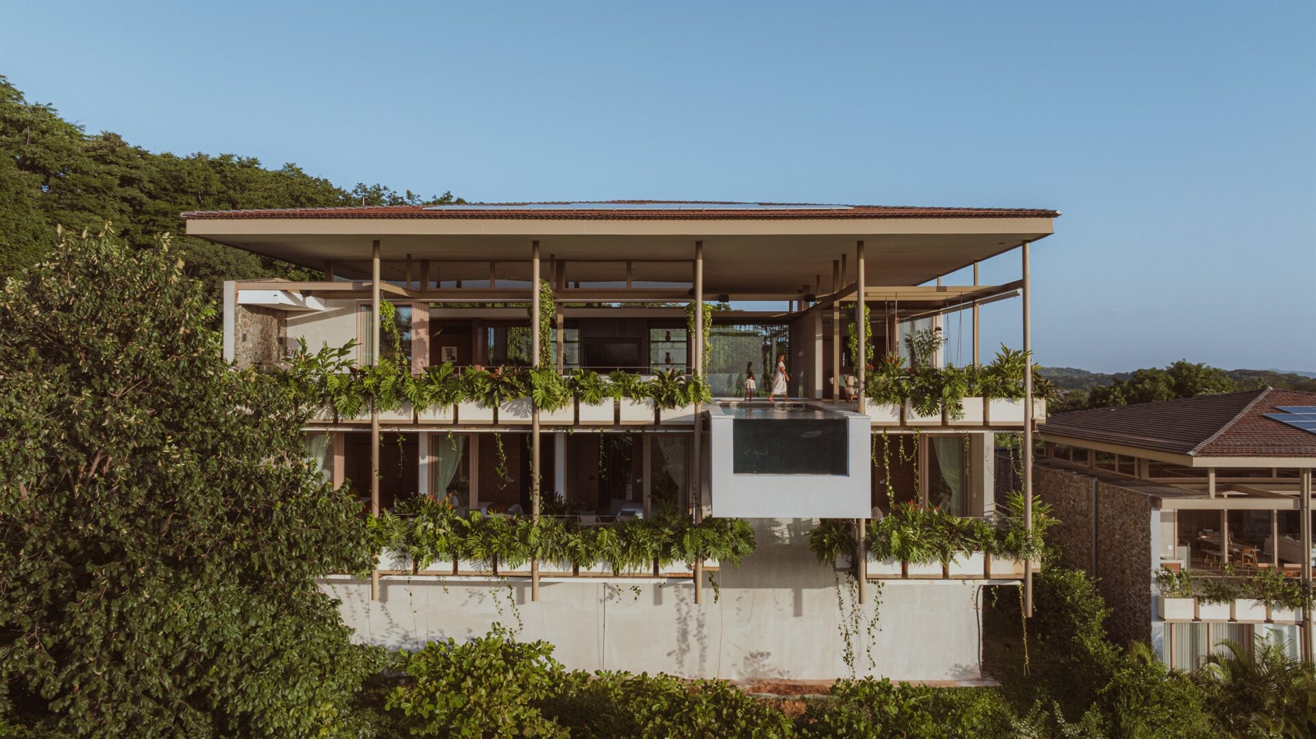 וילת הנופש Villa Nuri ממוקמת על צלע גבעה המשקיפה על האוקיינוס ​​השקט, האדריכלות שלה מרחפת מעל הנוף עם בריכה הנשלחת קדימה וצפה באוויר.
