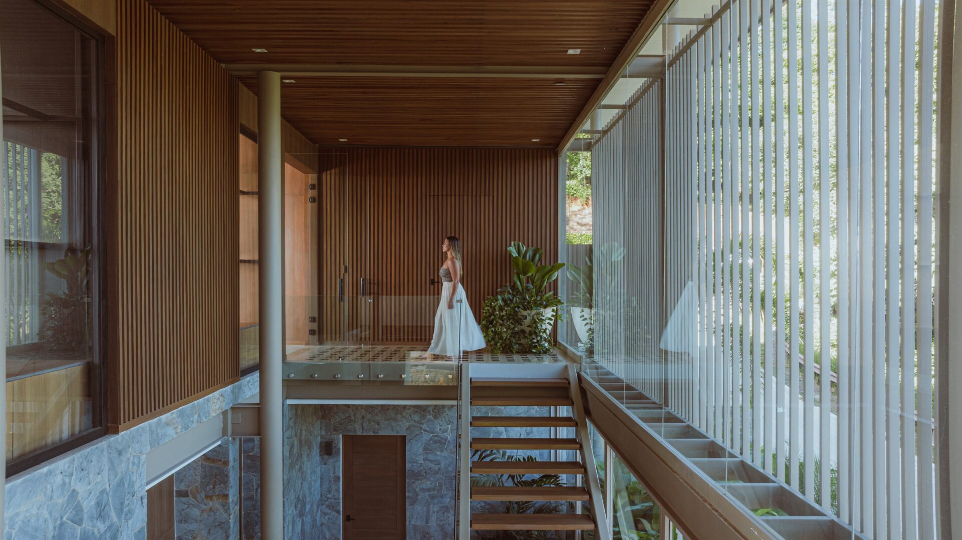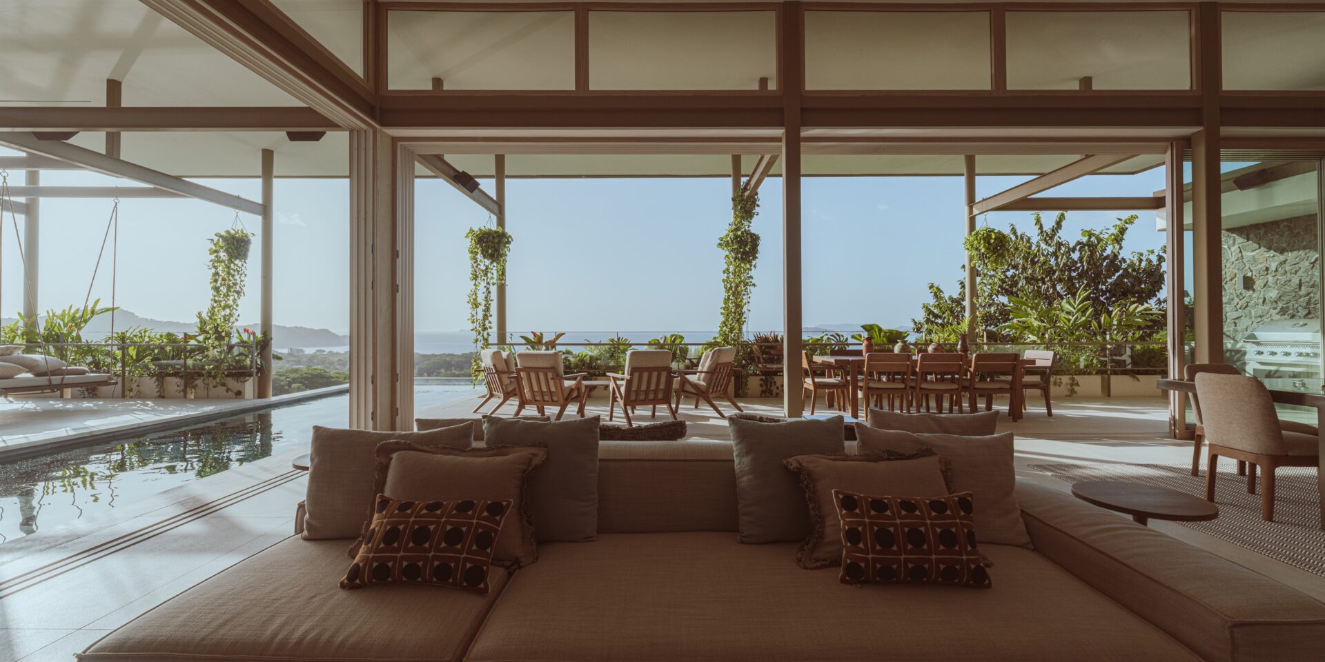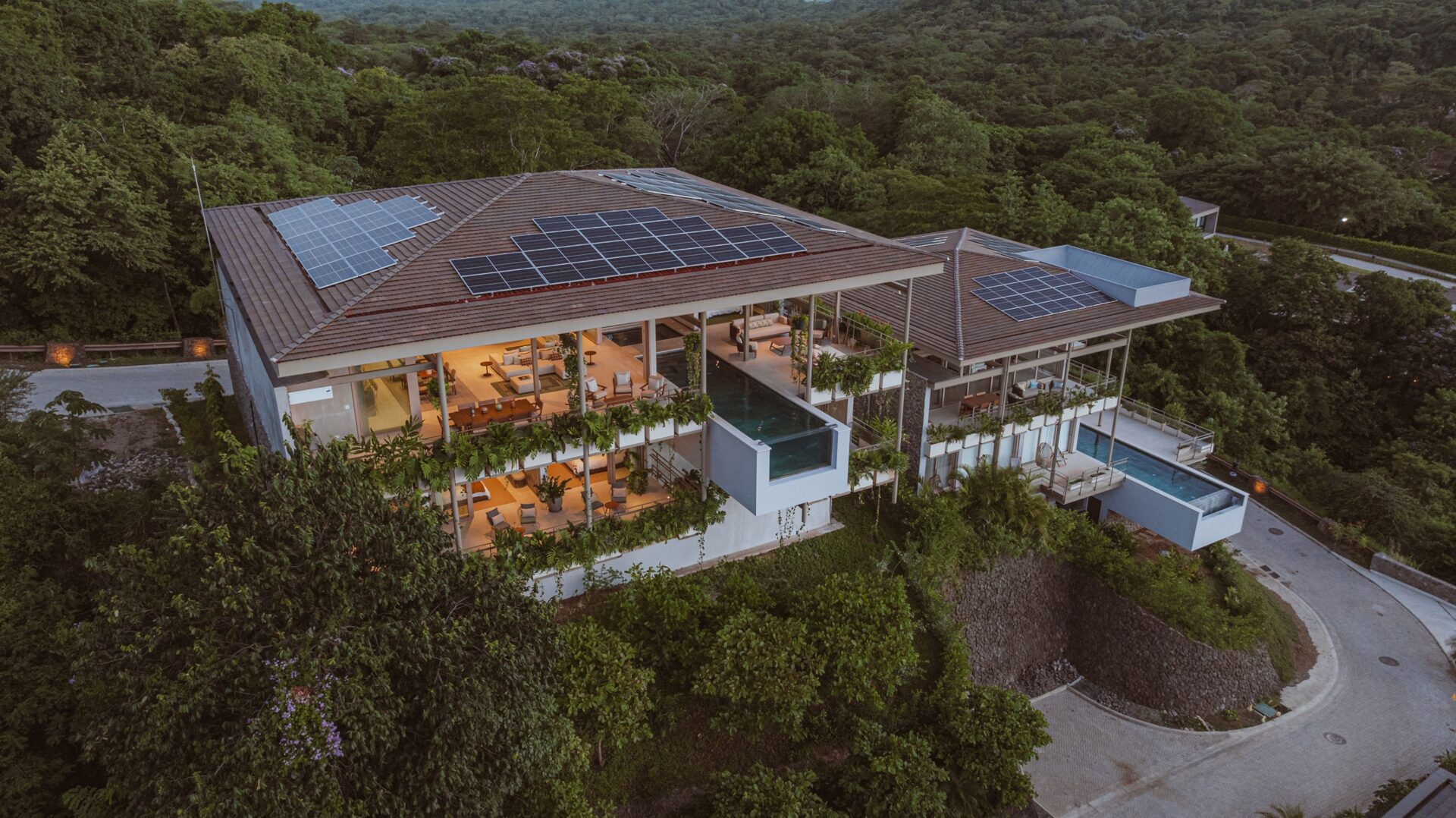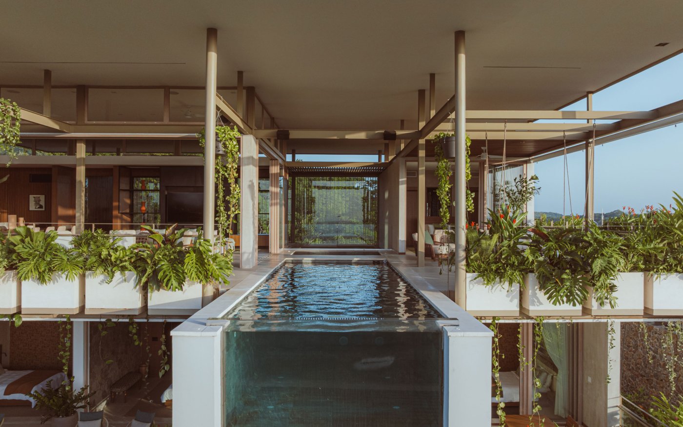 וילת הנופש Villa Nuri ממוקמת על צלע גבעה המשקיפה על האוקיינוס ​​השקט, האדריכלות שלה מרחפת מעל הנוף עם בריכה הנשלחת קדימה וצפה באוויר.