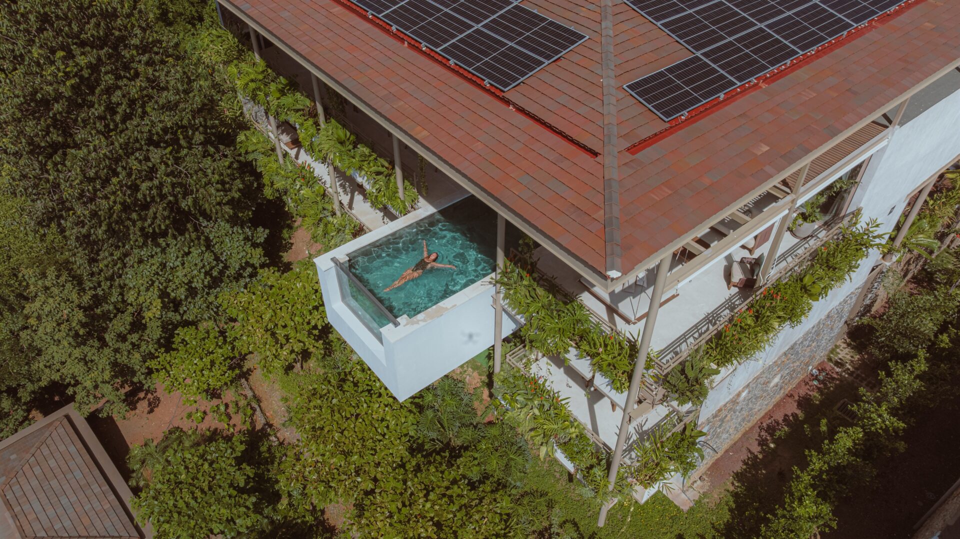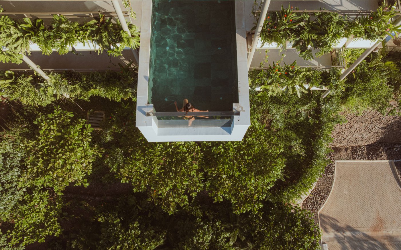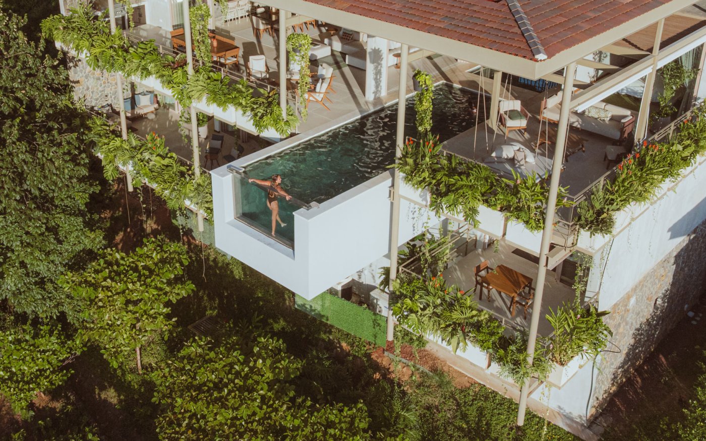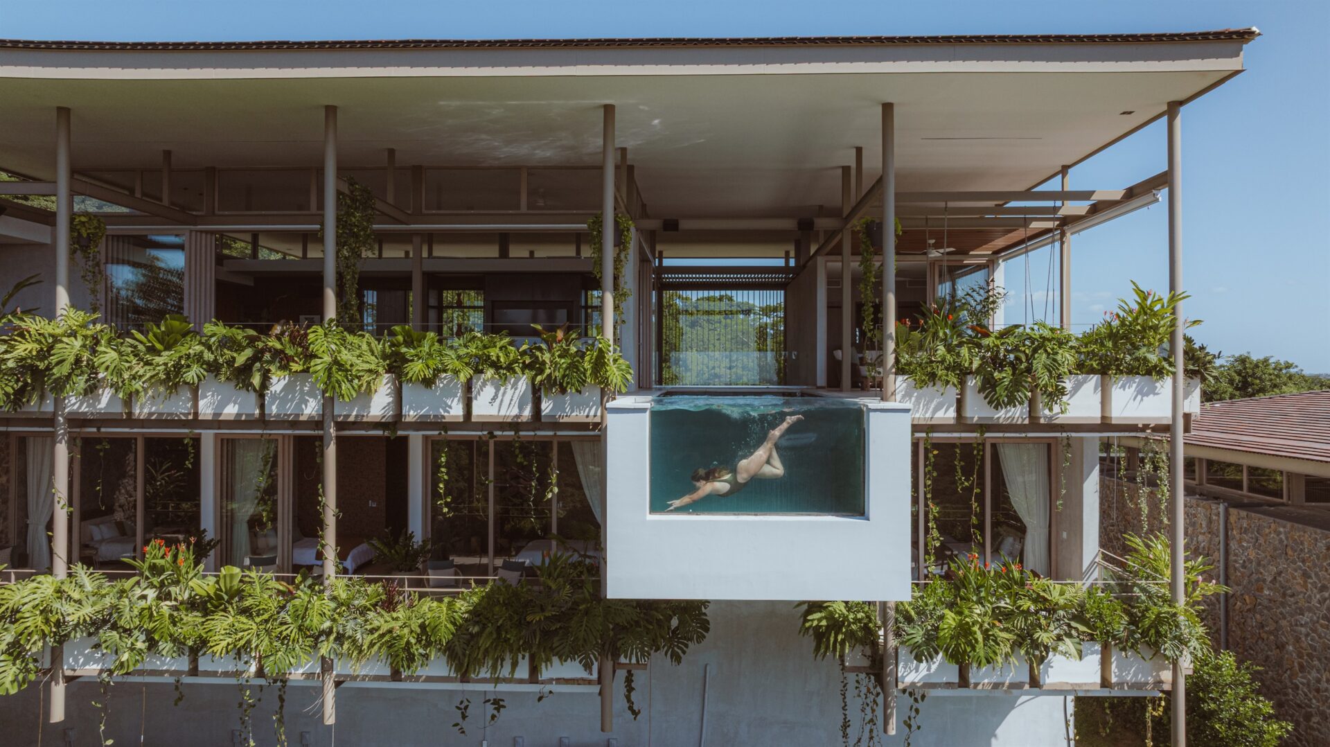 הציפה בקצה הבריכה הקנטיליברלית, שם יכולים להשקיף על הנוף היפהפה תוך ריחוף עשרה מטרים מעל הקרקע.