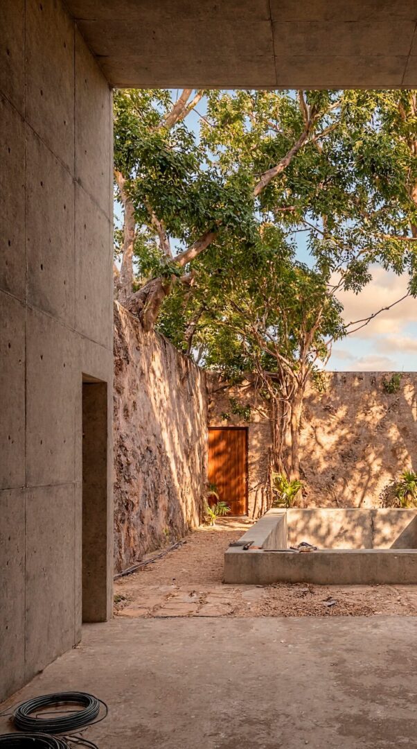 הקשר לתרבות המאיה מתבטא ברובד מרומז – לא בציטוטים צורניים, אלא בהמשכיות מרחבית וחומרית. החצר הפנימית, המסות הכבדות והצללים העמוקים משקפים מסורת בנייה מקומית שנולדה מתוך אקלים ונוף, ומחברים את הבית לזיכרון תרבותי מתמשך.