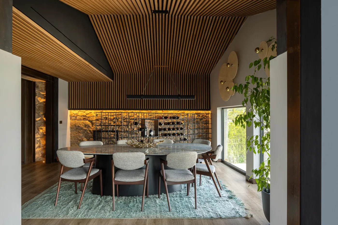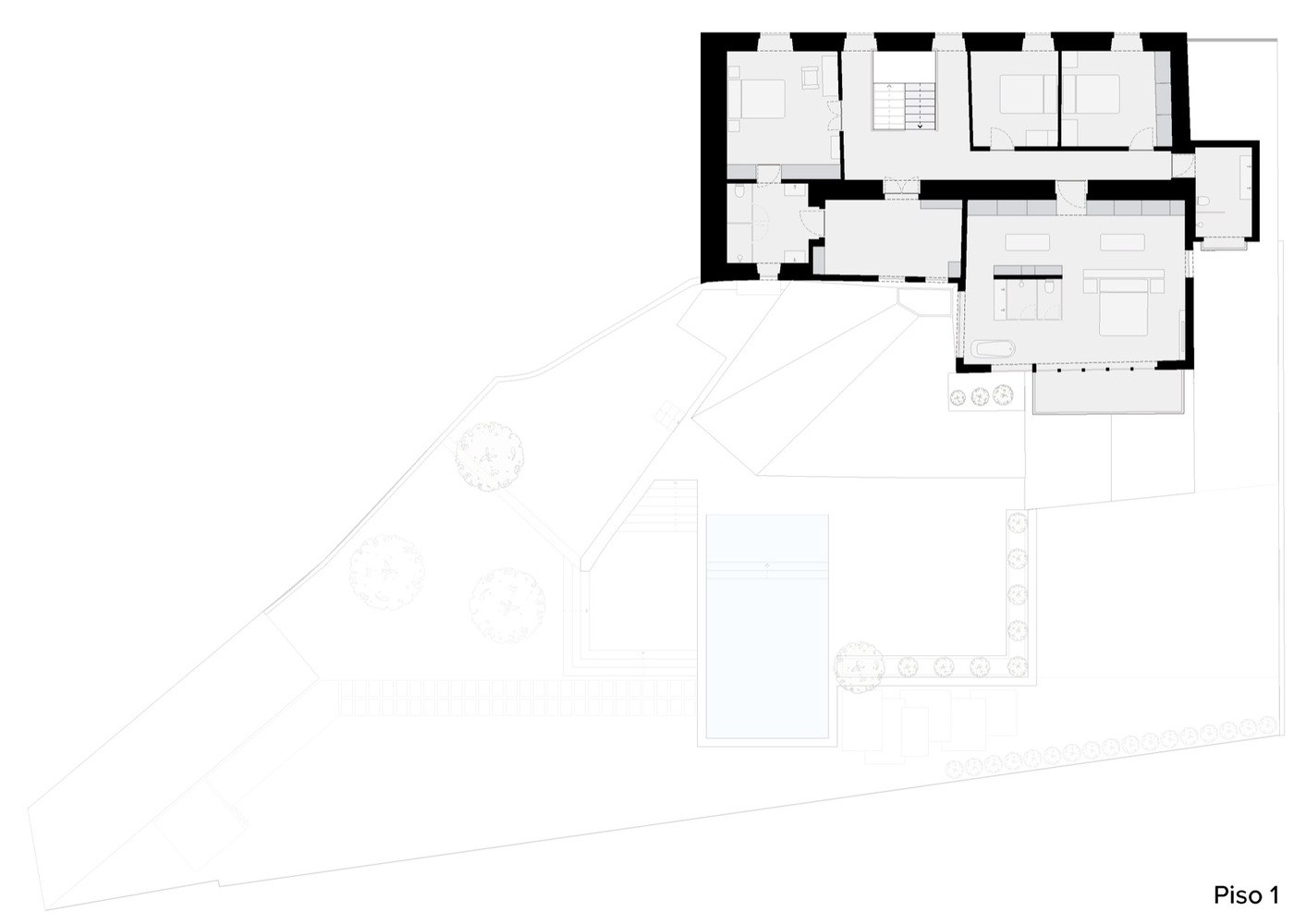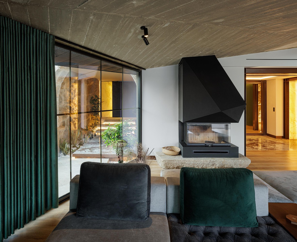 בתוך הבניין המזדקן עם קירות הגרניט העבים, גגות הרעפים המסורתיים והכניסה המקומרת, אשר נותרו ללא שינוי, עוצב הבית מחדש עם פריסה עכשווית יותר. חלונות ופתחים בסגנון רשת מהרצפה עד התקרה, ששוחזרו בקפידה, מסגרו חצרות פנימיות ופטיו, מעניקים לאזורי המגורים את הנוכחות הוויזואלית של המרחבים הירוקים.