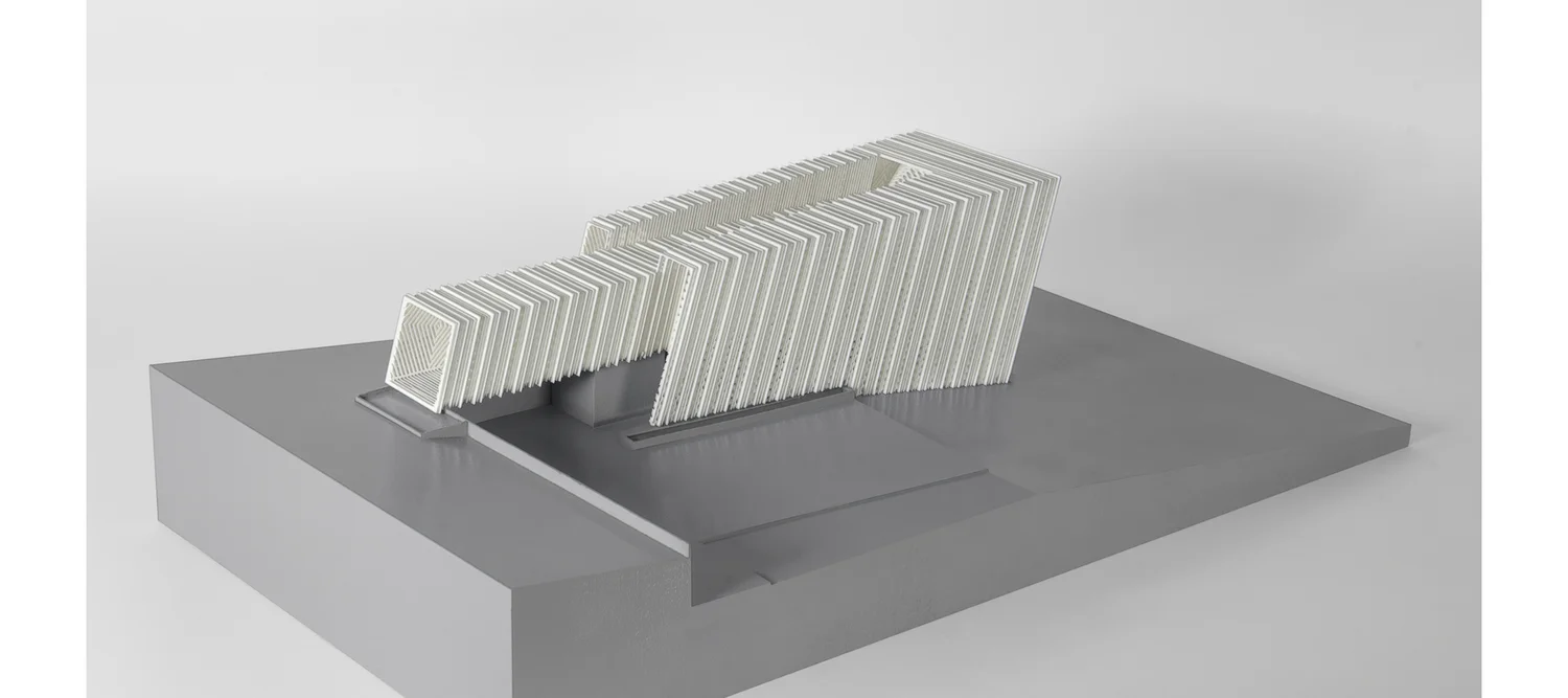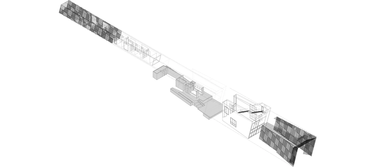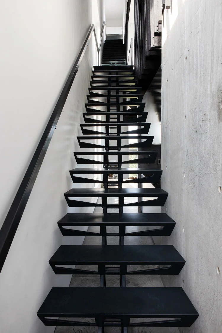 לעומתו, המבנה הפנימי מציע חוויה אינטימית ורכה יותר – עם שלושה חדרי שינה, חדרי רחצה וחללי מגורים פרטיים, בגימורים ביתיים ונעימים. המעבר בין שני האזורים יוצר תחושה כמעט סיפורית: מעבר בין עולמות שונים, ציבורי ופרטי, דרמטי ושקט.