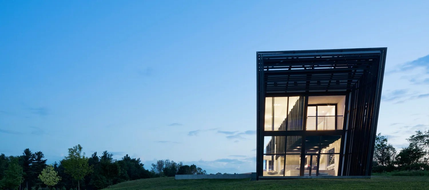 הבית, המשתרע על פני כ-46 דונם באזור Hudson Valley, תוכנן כשני מבנים מוארכים המשתלבים זה בתוך זה – “שרוול בתוך שרוול”. המבנה הפנימי עטוף במעטפת חיצונית גדולה יותר, וכך נוצרים שני עולמות שונים תחת קורת גג אחת.