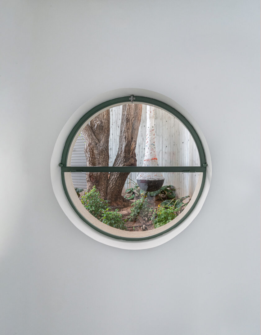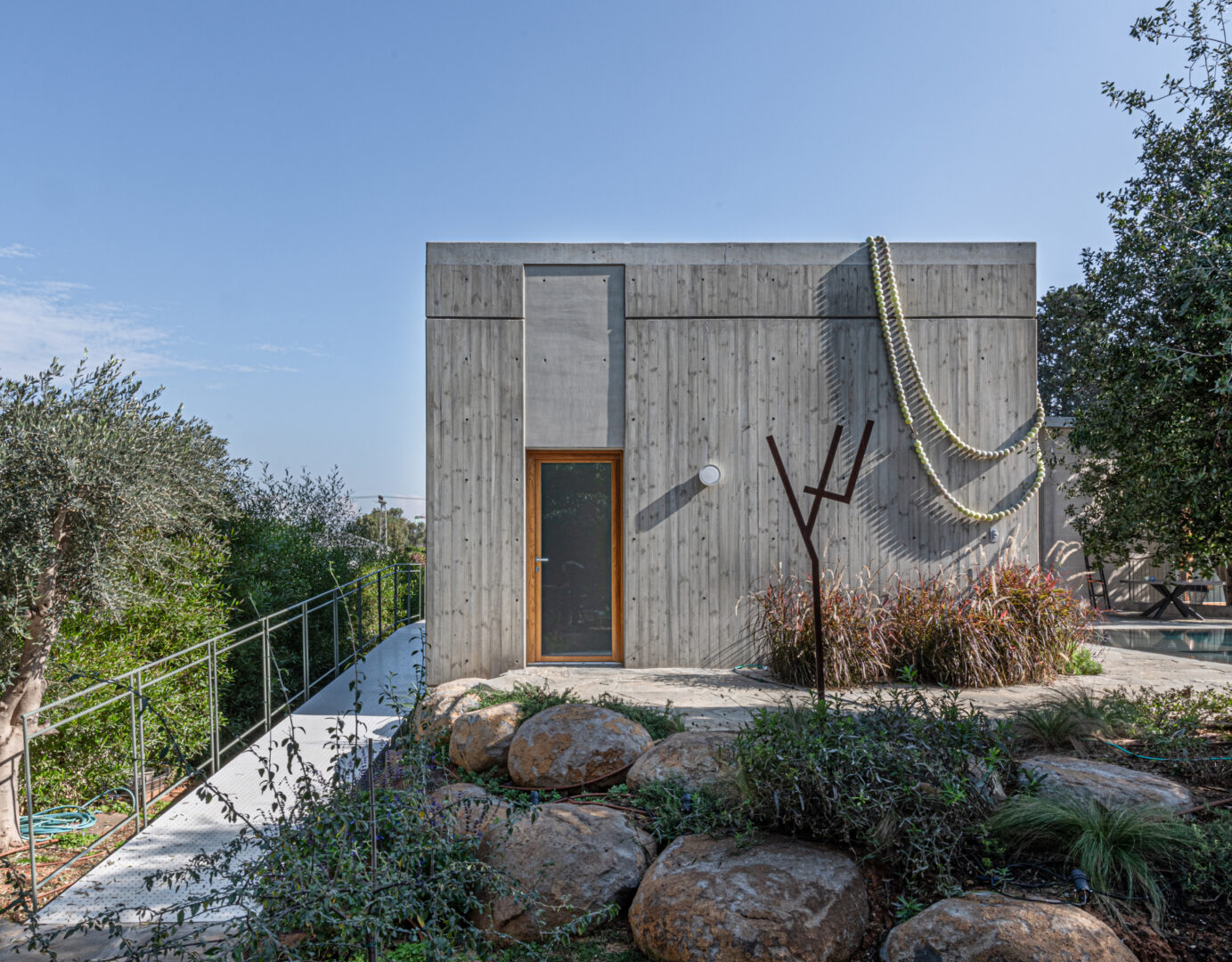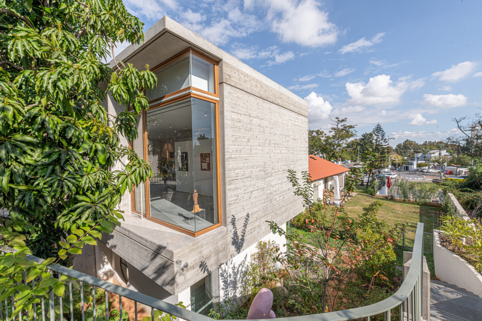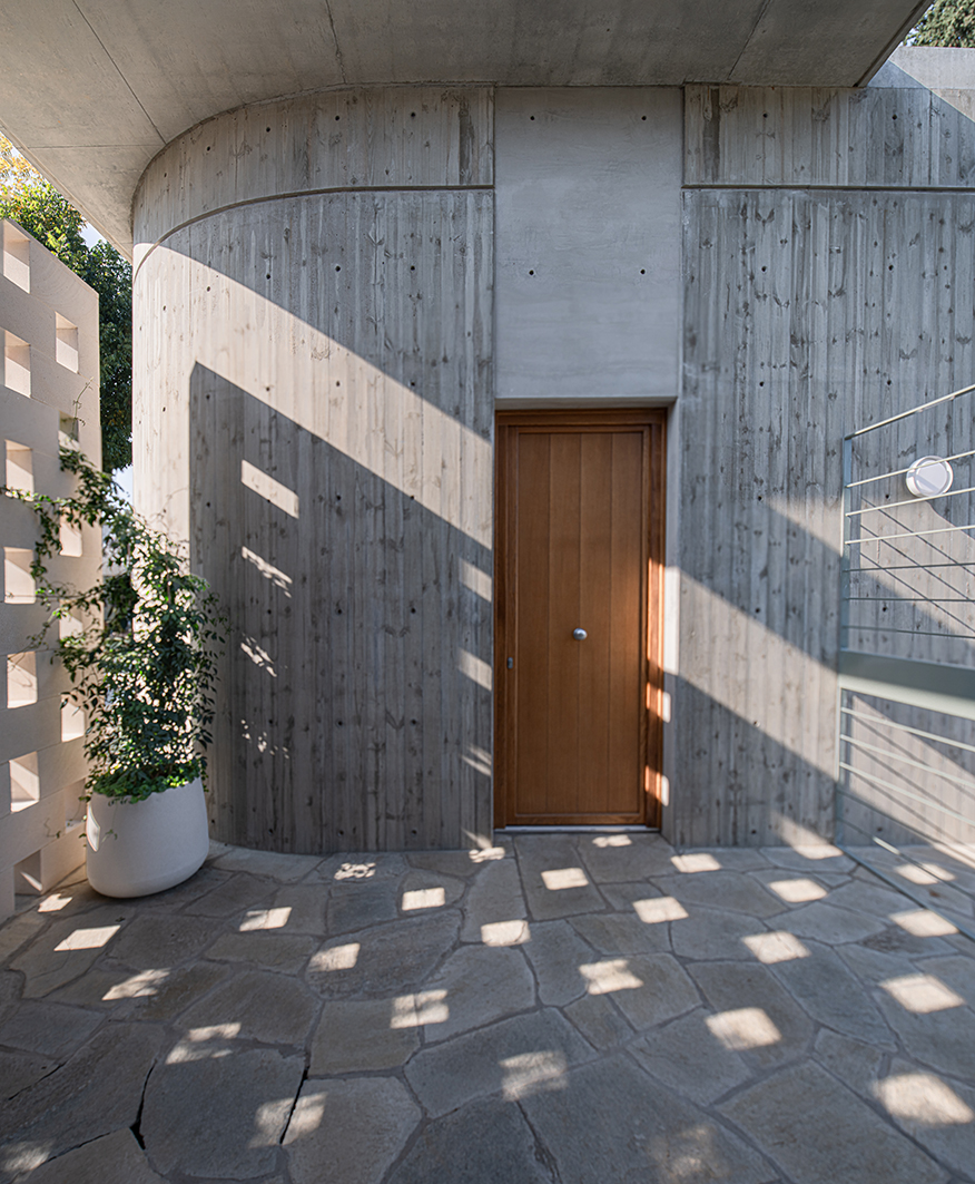 כדי לאזן את הנוקשות החומרית של הבטון, הלף במיומנות רבה שילבה בבית חלונות ודלתות עץ מלא, חלונות יוקרה. חלונות מביאים איתם בנוכחות חומרית עשירה שמרככת את המינימליזם המחוספס של הבטון ומוסיפה לבית תחושת עומק וחום.