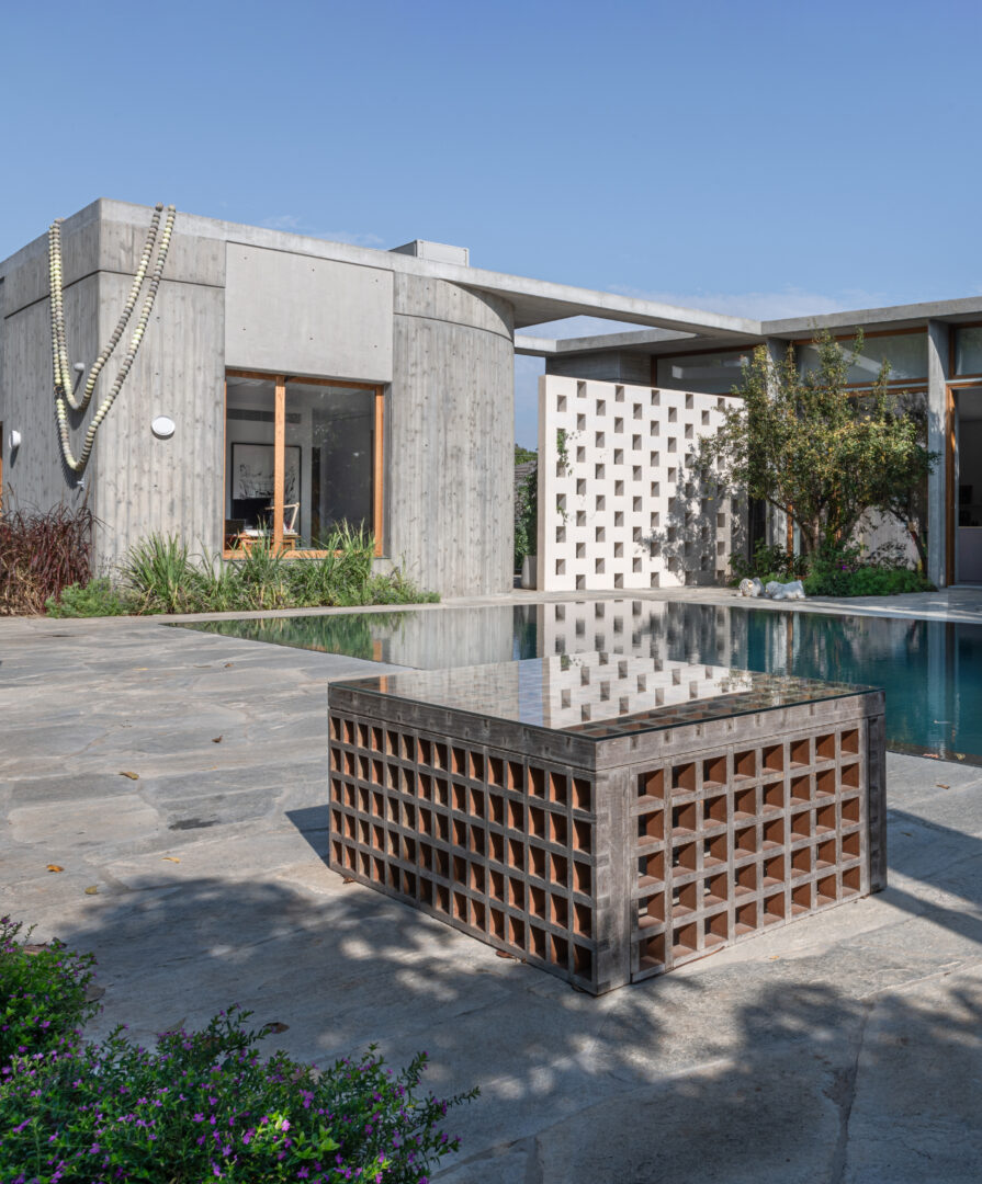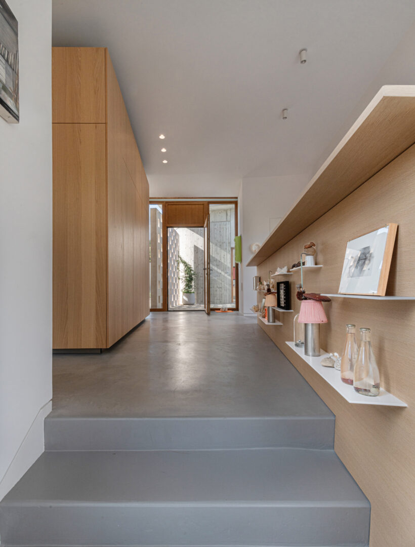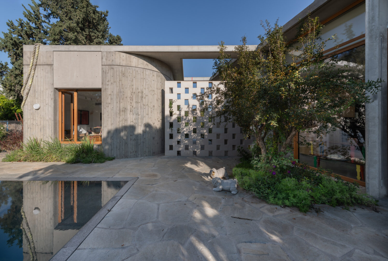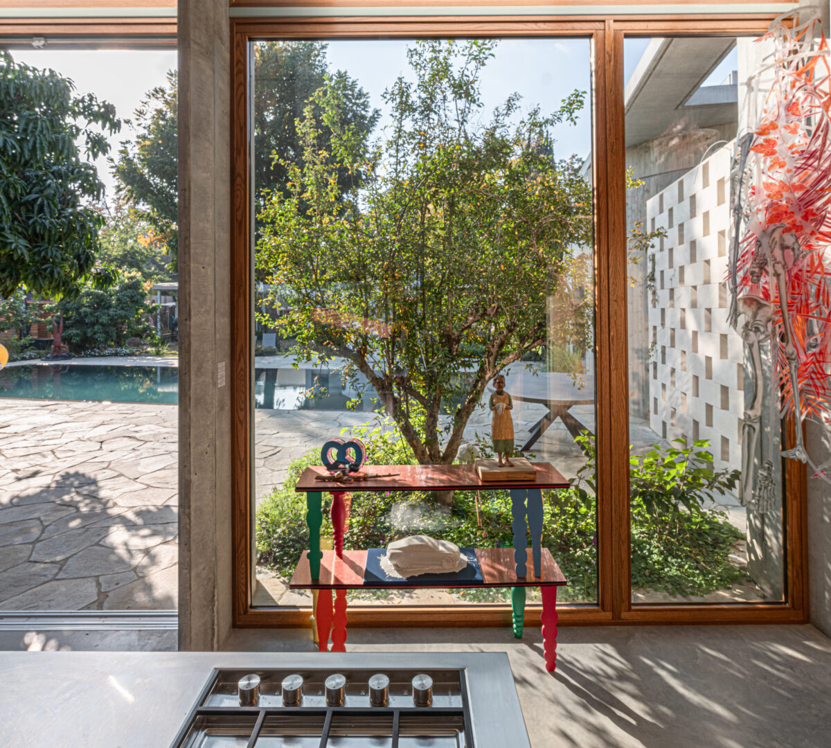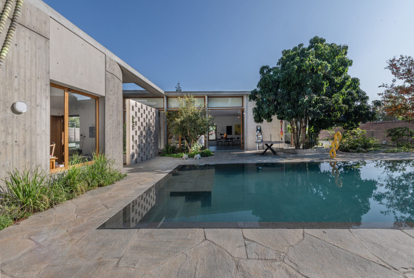 כדי לאזן את הנוקשות החומרית של הבטון, הלף במיומנות רבה שילבה בבית חלונות ודלתות עץ מלא, חלונות יוקרה. חלונות מביאים איתם בנוכחות חומרית עשירה שמרככת את המינימליזם המחוספס של הבטון ומוסיפה לבית תחושת עומק וחום.