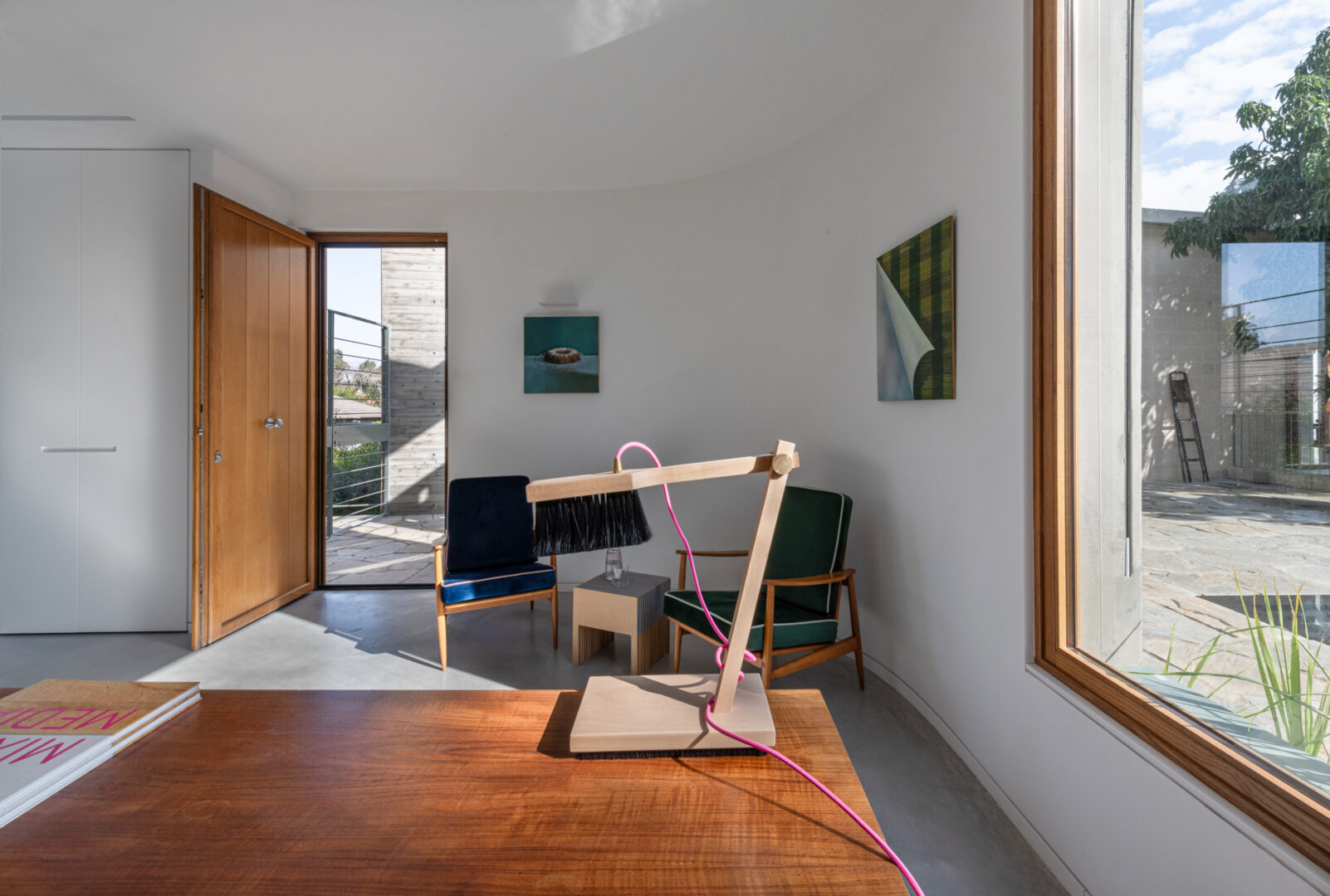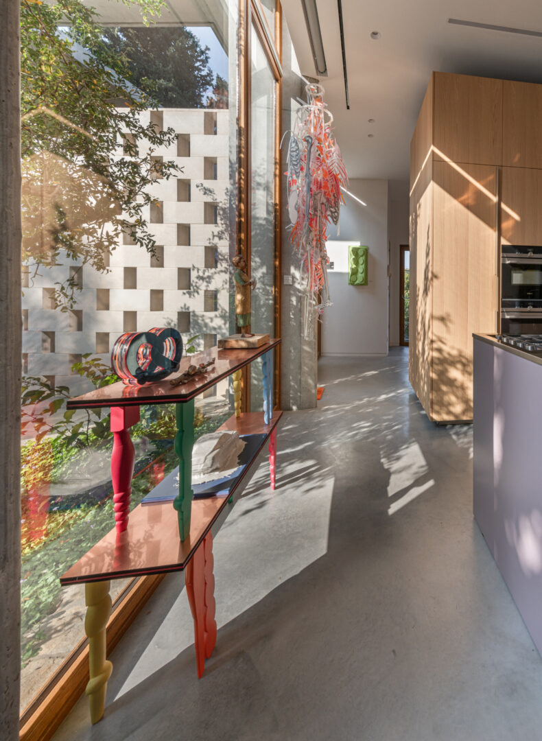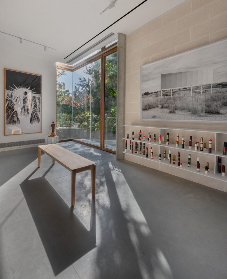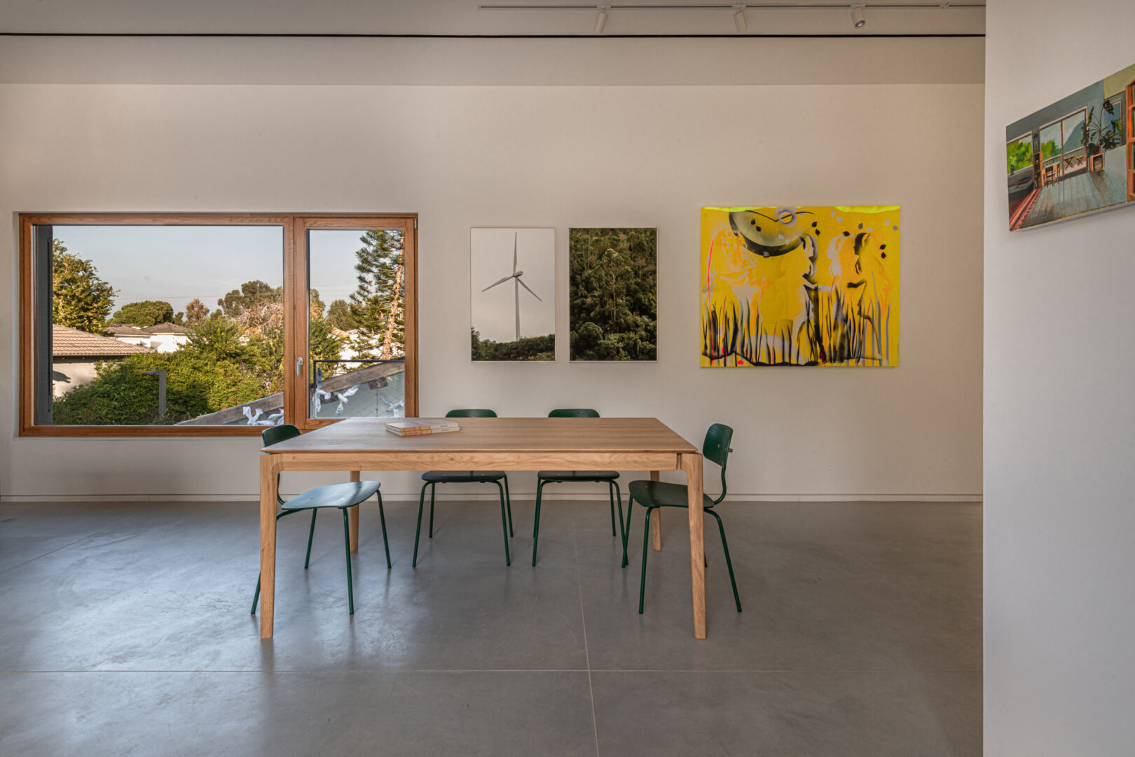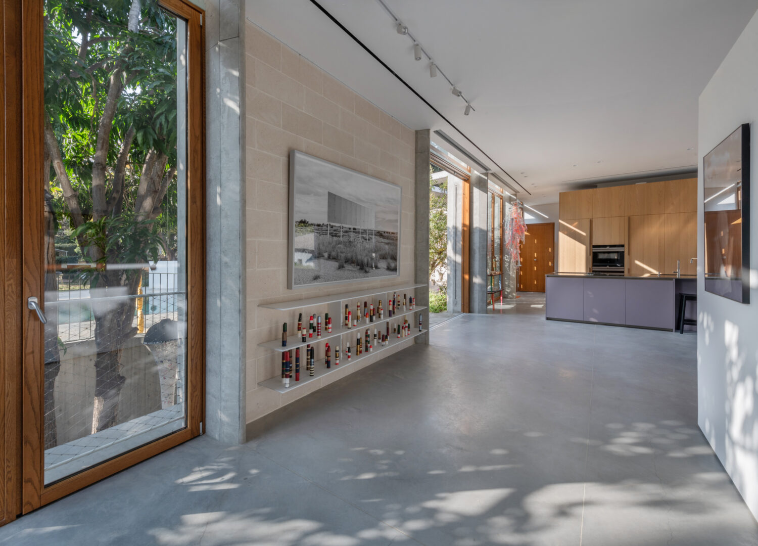 אחד המאפיינים המיוחדים של הבית הוא תפקודו כגלריה פרטית. הלף תכננה מערך חללים שניתן להלביש עליו תערוכות משתנות, כך שהבית עצמו פועל כמרחב אמנות. המעברים בין החללים נבנו בקצב איטי ומבוקר, המאפשר ניתוק מהיומיום וכניסה הדרגתית אל תוך חוויית הצפייה. כל חלל מעוצב כך שיוכל להכיל סוג שונה של יצירה – עבודות גדולות ובעלות נוכחות לצד יצירות אינטימיות ועדינות.