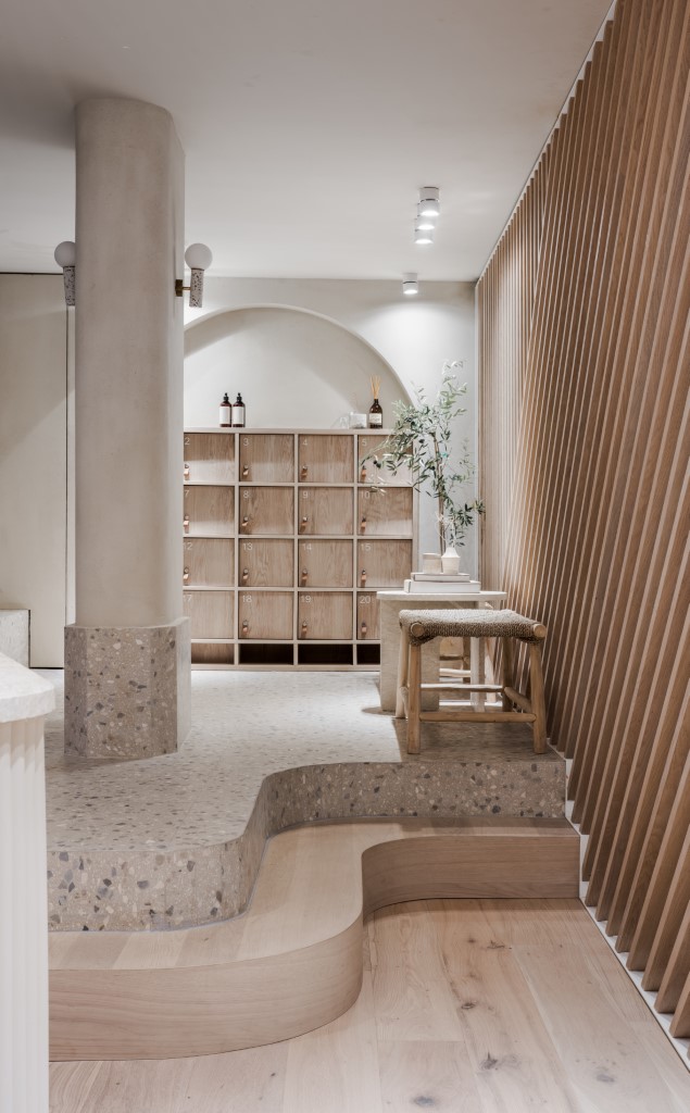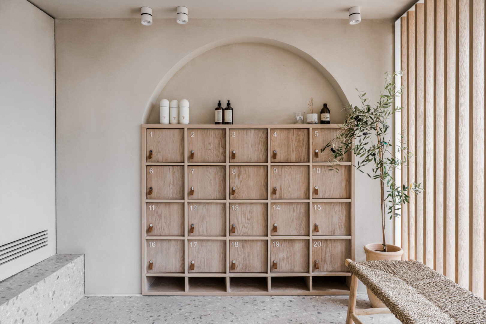 הריהוט ופרטי הנגרות תוכננו בקנה מידה אנושי, ומשתלבים כחלק בלתי נפרד מהאדריכלות. ספסלים, אזורי אחסון ומשטחי ישיבה תומכים בשהייה לפני ואחרי התרגול, ומאפשרים רגע של עצירה, התארגנות והתכנסות. כל פרט תוכנן מתוך מחשבה על נוחות, זרימה ושימוש יומיומי אינטואיטיבי.