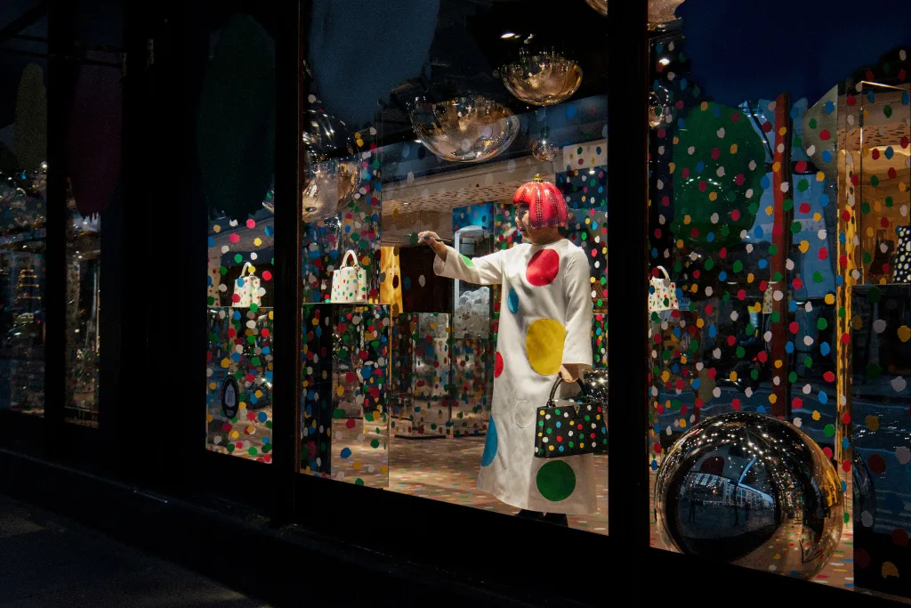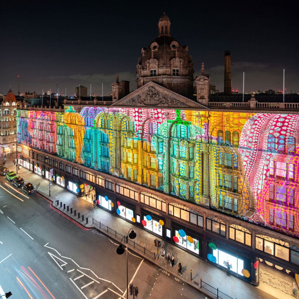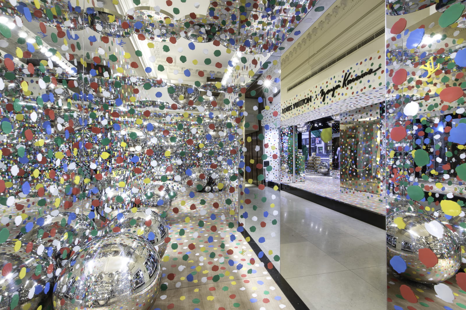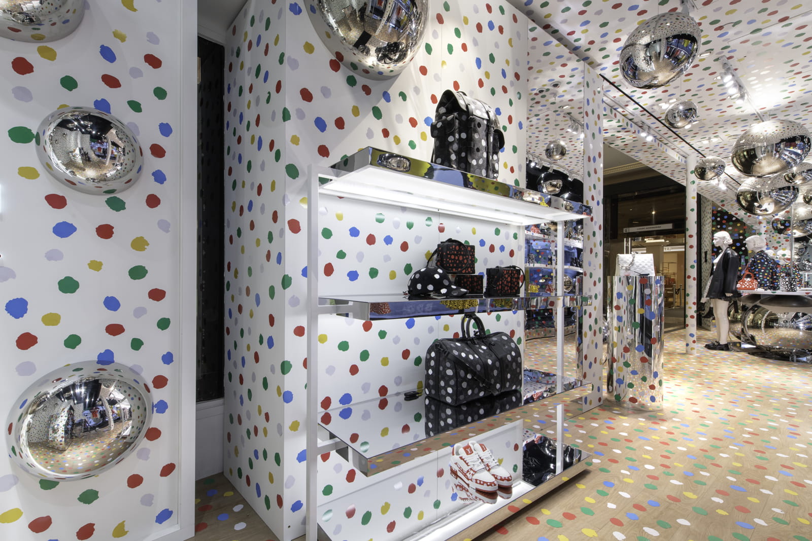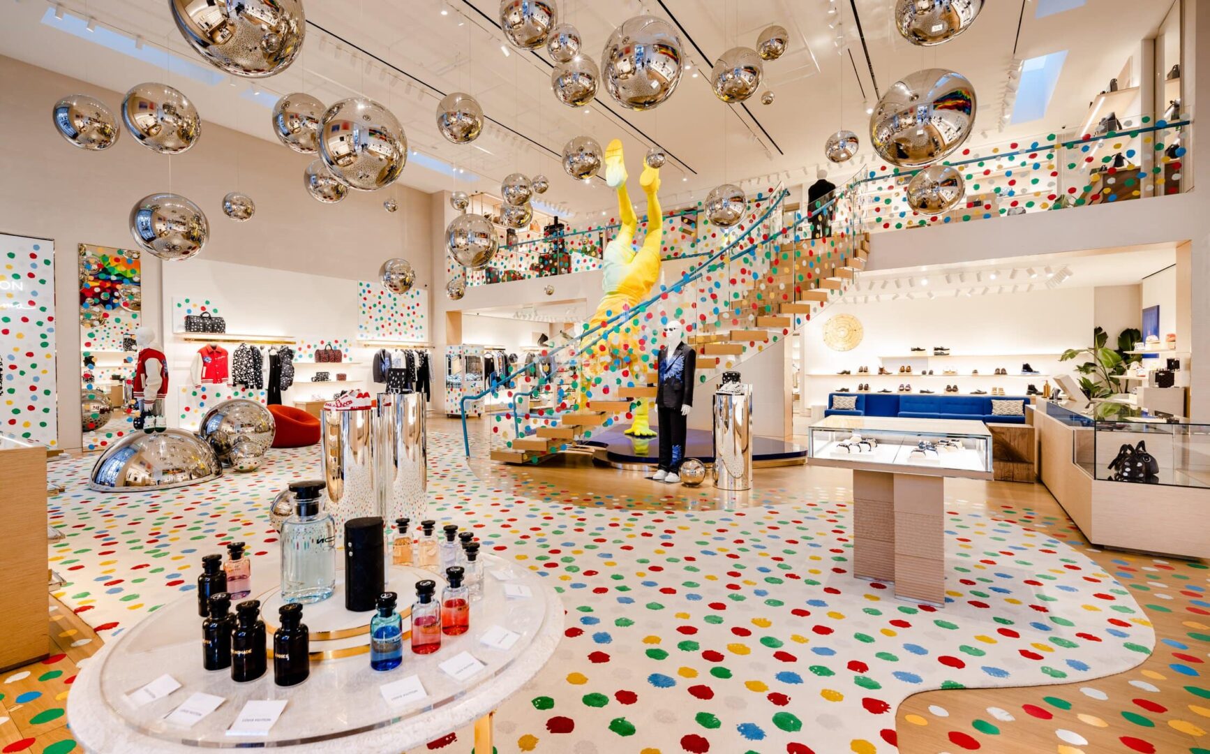 שיתוף הפעולה בין Louis Vuitton לאמנית Yayoi Kusama בשנת 2023, קיבל ביטוי מרחבי יוצא דופן ב־Harrods הלונדוני, דרך מיצב של סטודיו L’Atelier Five.