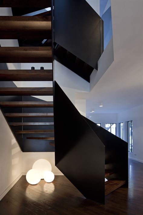 הקירות, מבפנים ומבחוץ, נצבעו לבן, ולחלונות הגדולים – יריעות זכוכית נקיות שמכניסות את הנוף פנימה – נבחרו תריסי עץ בירוק כהה ופרופילי ברזל שחור, שמעשיר את פלטת הגוונים המונוכרומטית. בריכה נבנתה בגינה האחורית, ומסביבה מוקמו עצים גדולים, שמשווים לה מראה ותיק.