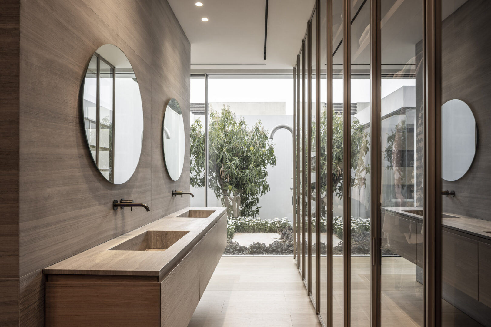 הבית בנוי ממעטפות כפולות הכולאות חללי ביניים מוצלים ומאווררים המותאמים לאקלים החם ואור השמש הבוהק. אזורי הביניים השונים, כמו החצרות הפנימיות, מהווים חלל תווך מוצל ורב שימושי ששייך לפנים ולחוץ בו זמנית.