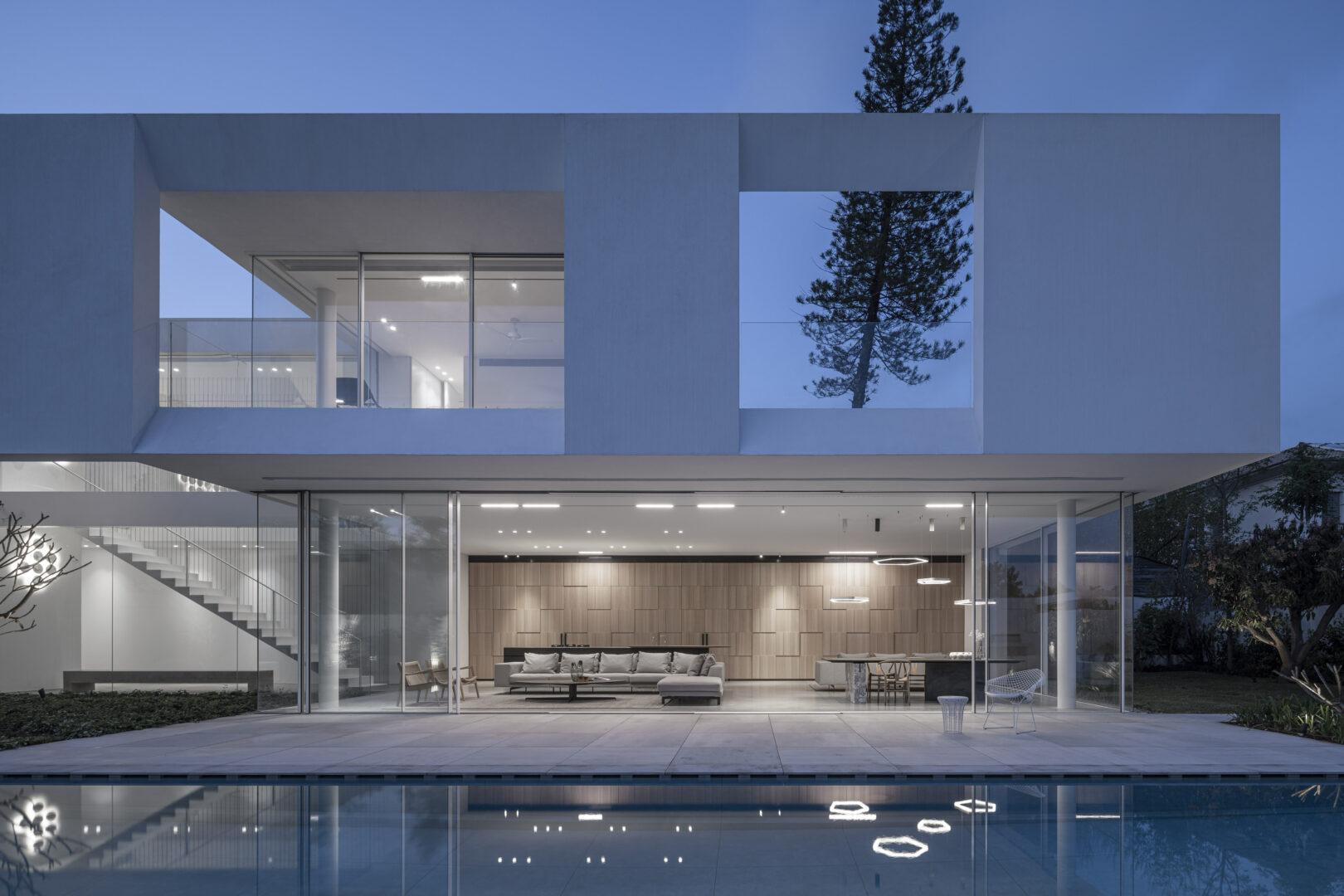 את המסות הסדורות והקומפוזיציה המאופקת השלמנו בגמר טיח וצבע לבן, שיצרו מעטפת מבנה מופשטת והצל ותנועת האור גרמו לה להיות מסתורית יותר והדגישו את מימד העומק בחזיתות.