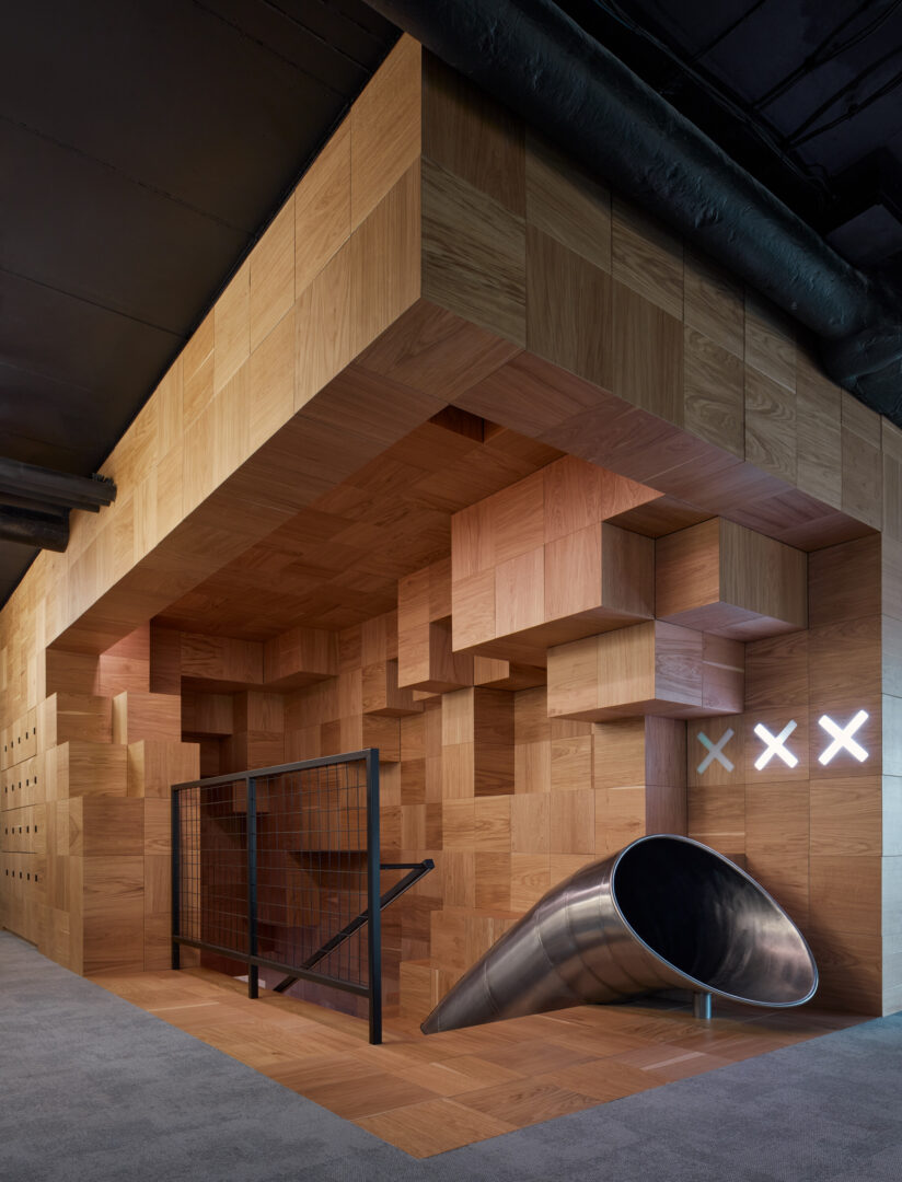 התכנון כלל הרחבת משרדי הליבה ובא לספק קומה נוספת עם גמישות מקסימלית בשימוש. חיבור אנכי של שתי קומות נוטה להיות בעייתי אם יש לשמור על הזרימה הטבעית של החלל. שתי הקומות מחוברות טקטונית על ידי מבנה המורכב מאלפי פיקסלים מעץ, המווסת את החלל סביבו והופך לנקודת ציון פנימית שלו. בליבת המבנה גרם מדרגות פנימי חדש ולהרפתקנים יותר, מגלשה. בתוך תאי העץ מסתתרים לוקרים אישיים, חדרי הלבשה וחדרי אירועים, בעוד השברים הבודדים יוצרים באופן אורגני פינות המיועדות לישיבה לא רשמית ולמצגות פומביות.